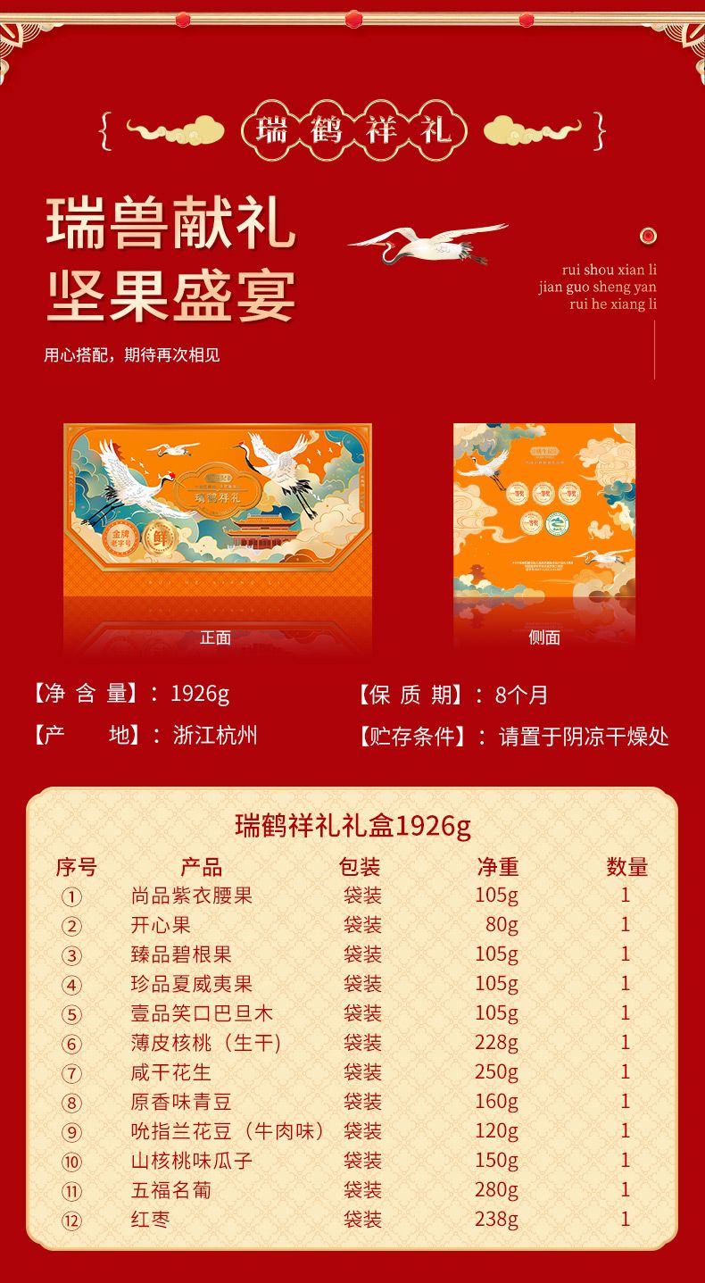 商品名称:姚生记瑞鹤祥礼礼盒1.926千克坚果礼盒