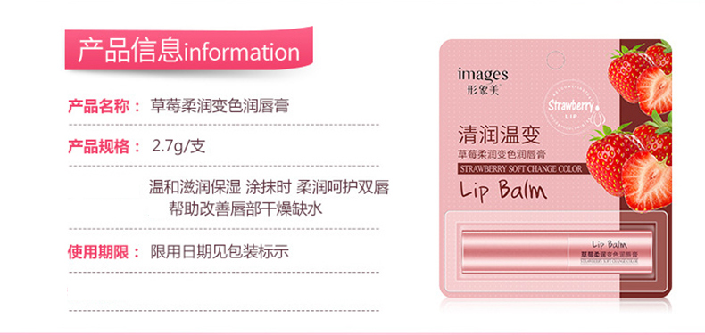 商品名称:形象美 草莓柔润变色润唇膏 2.7g*2支