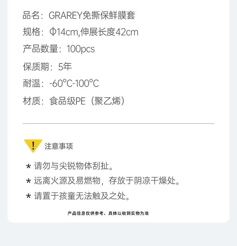 商品名称:GRAREY(格瑞亚)免撕保鲜膜套时尚三色高压高透款