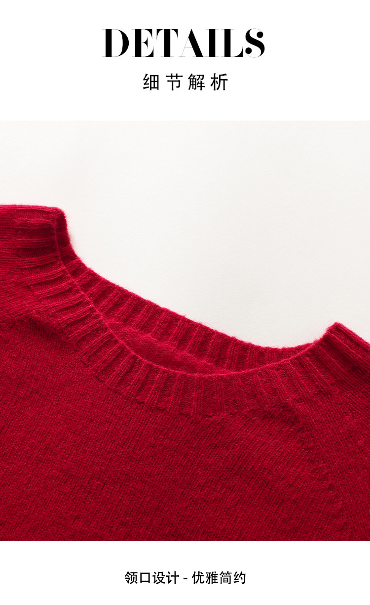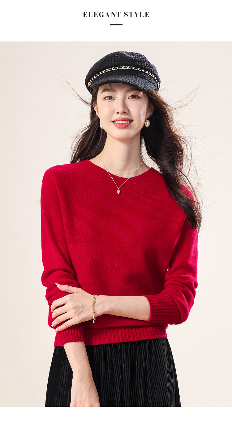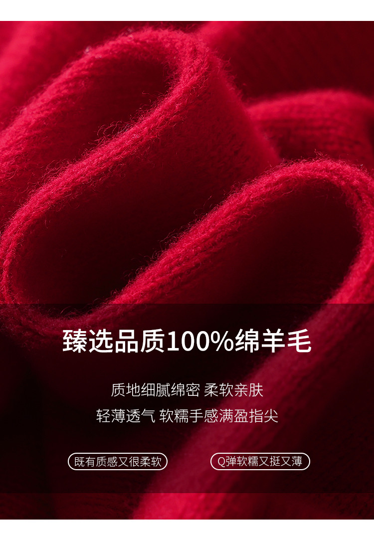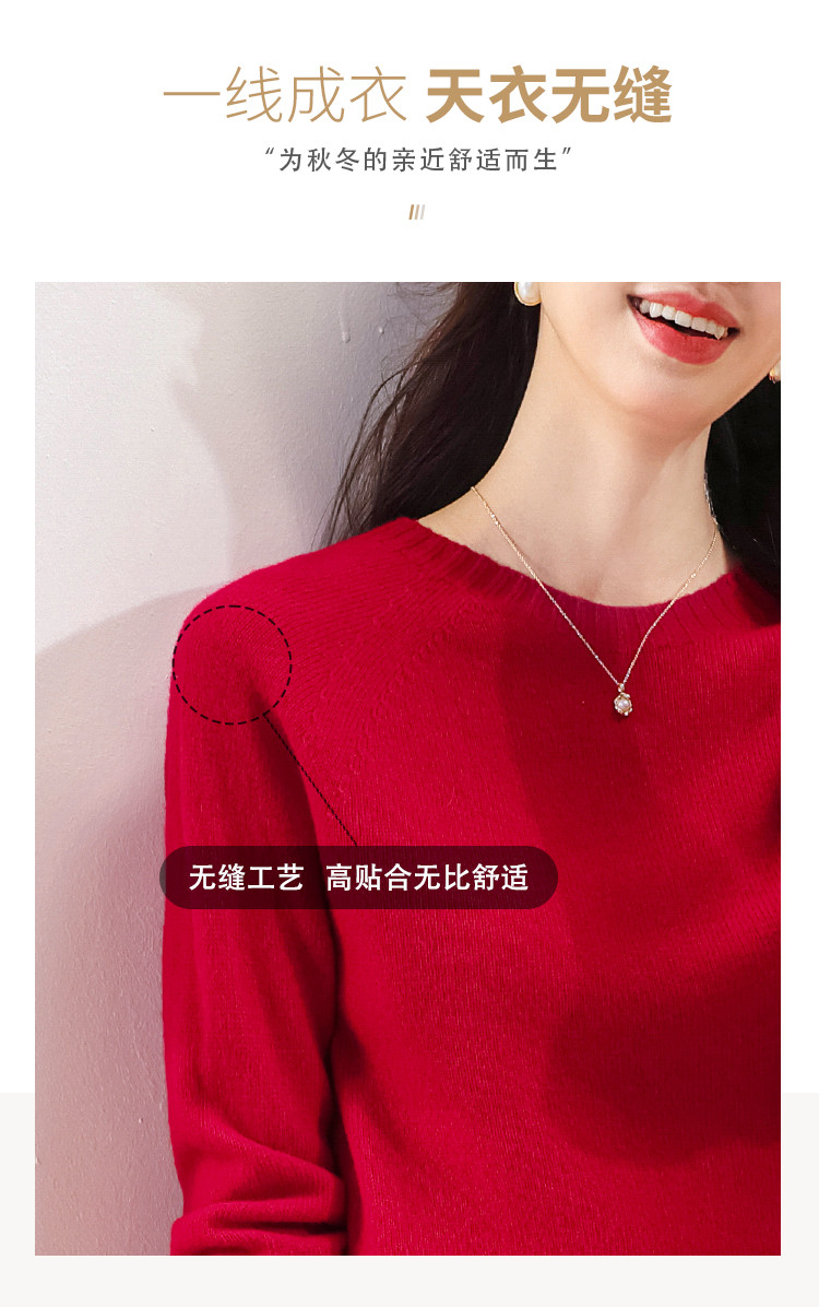 商品名称:【100%绵羊毛】春季无缝圆领纯羊毛本命年毛衣针织羊毛衫女 390355