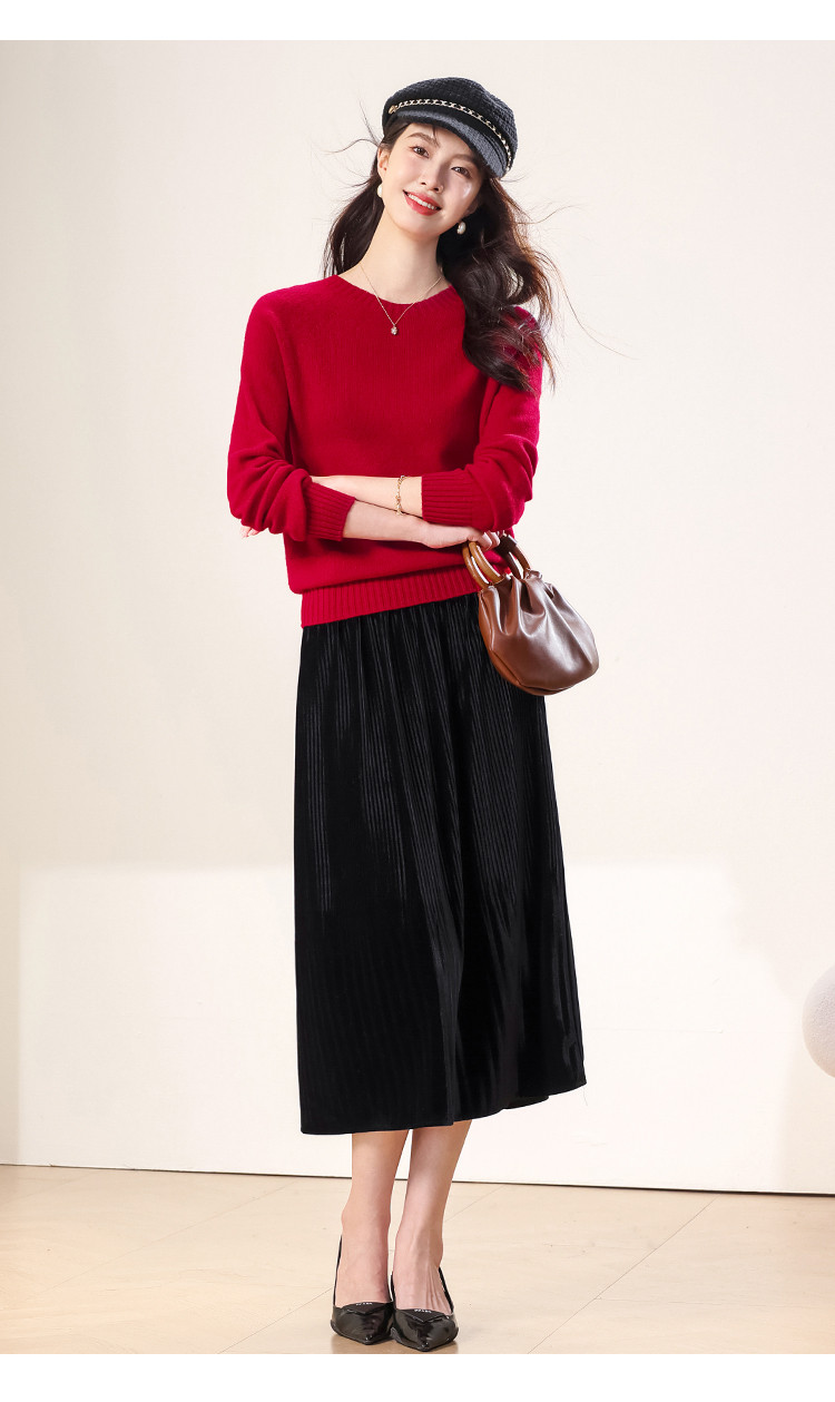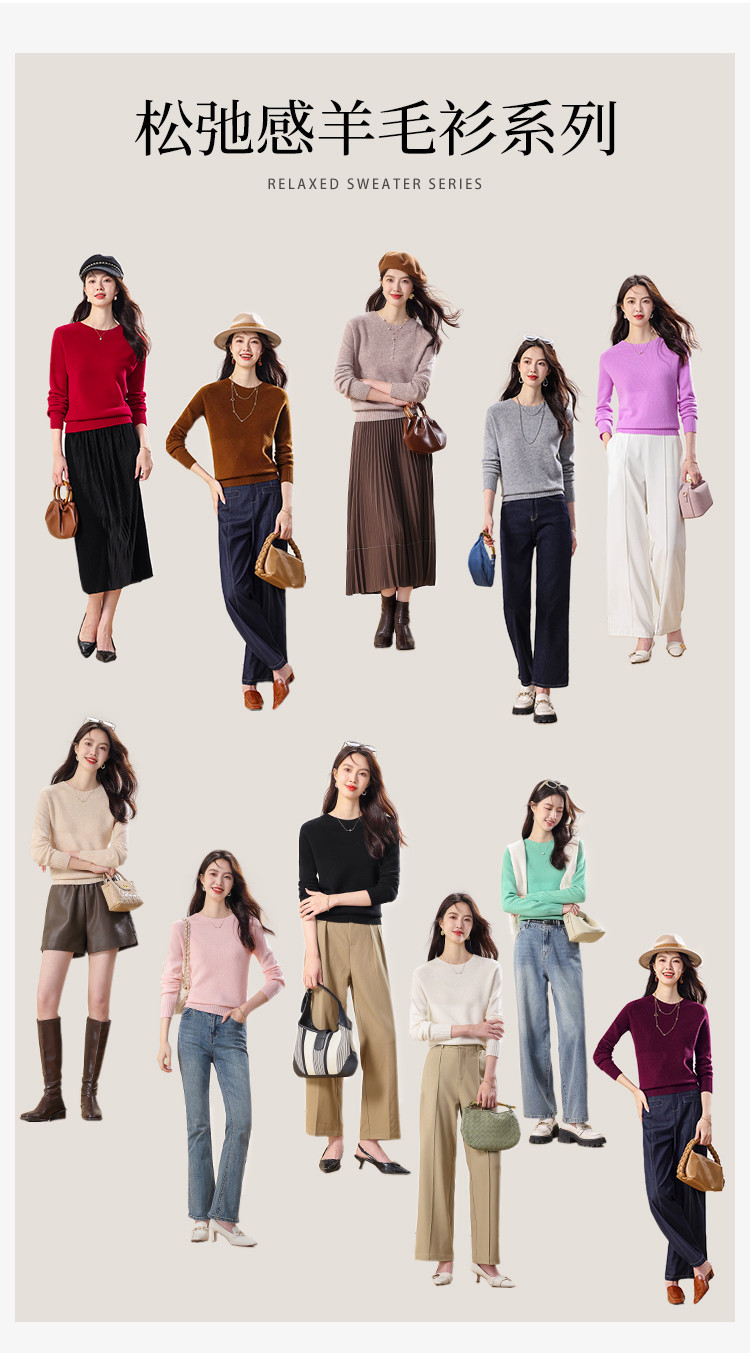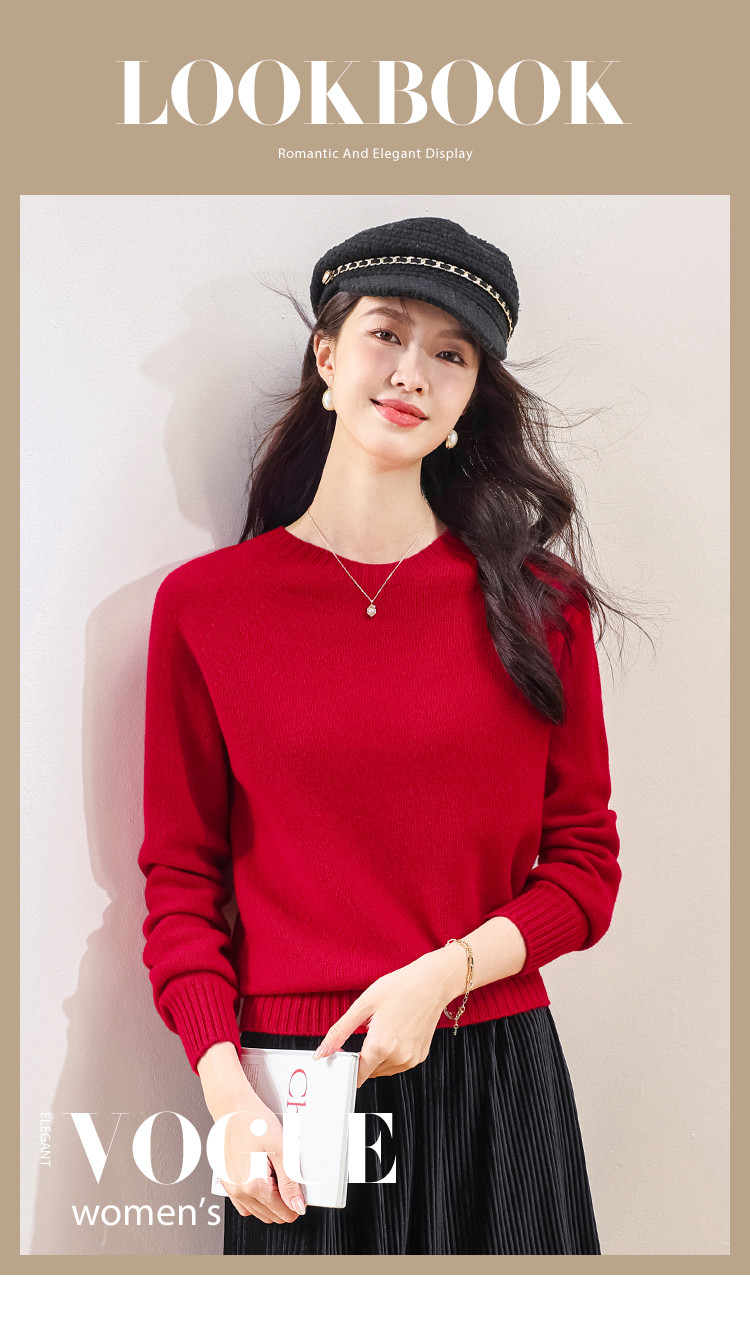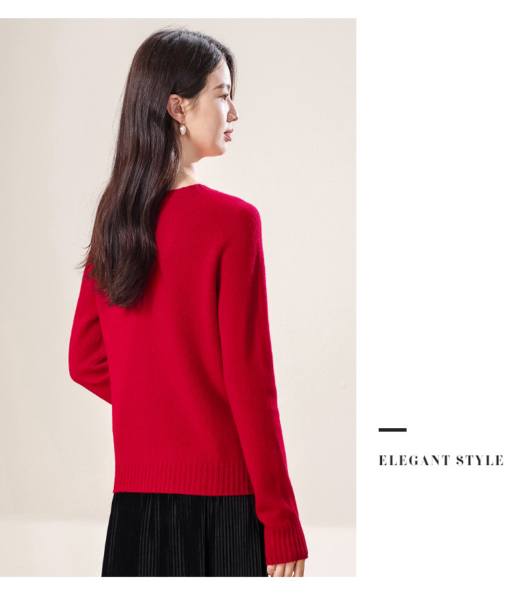 商品名称:【100%绵羊毛】春季无缝圆领纯羊毛本命年毛衣针织羊毛衫女 390355