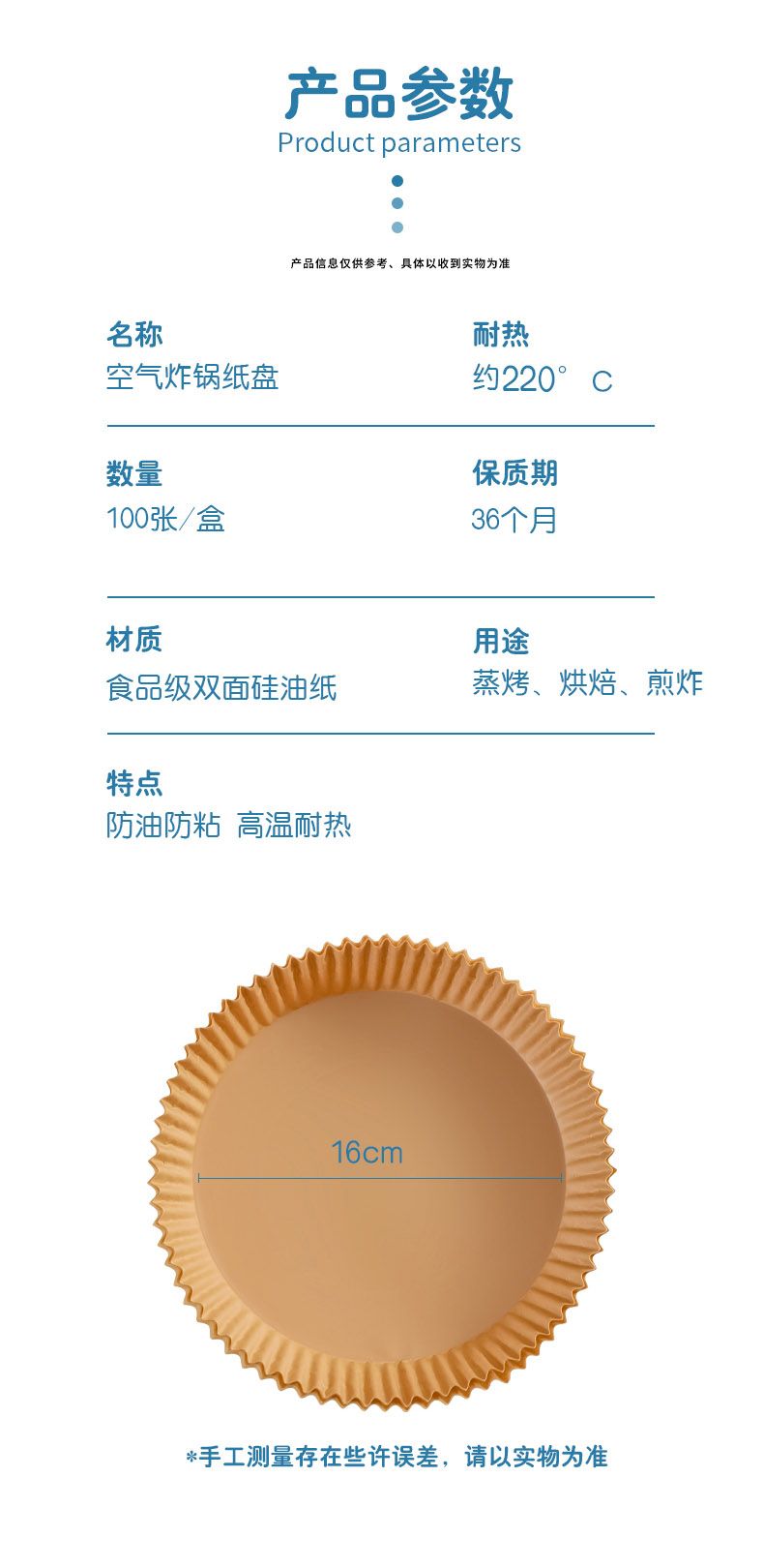商品名称:GRAREY(格瑞亚)空气炸锅纸盘吸塑盒独立包装无需清洗防水防油食品级材质200枚