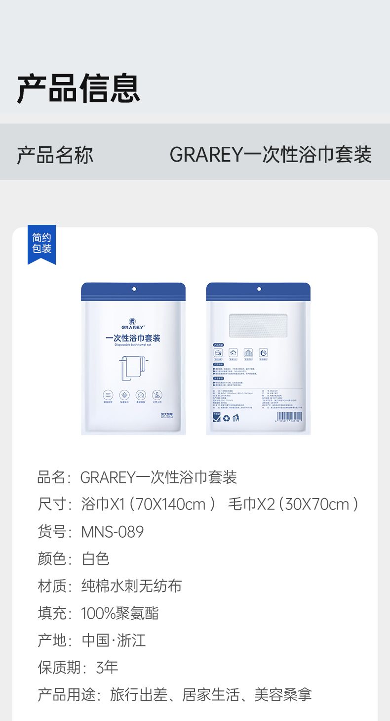 商品名称:GRAREY(格瑞亚)一次性浴巾4套装85%加厚升级加厚型干净卫生独立包装