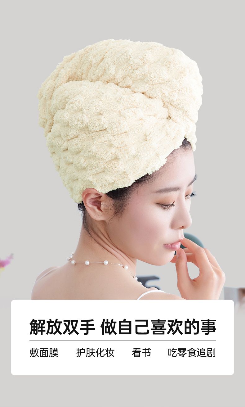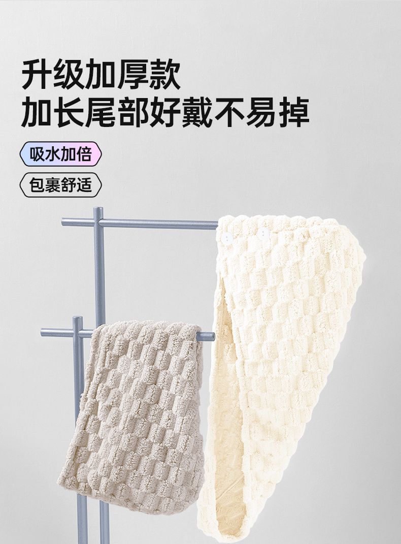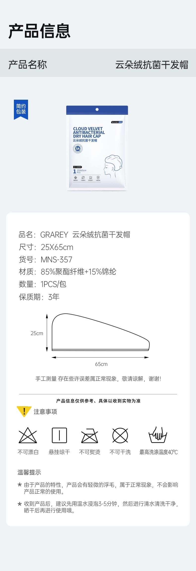 商品名称:GRAREY(格瑞亚)云朵绒抗菌干发帽5A抗菌/加大加厚100g蓬松柔软瞬吸透气抗菌不起球