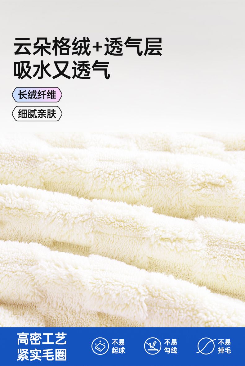 GRAREY(格瑞亚)云朵绒抗菌干发帽5A抗菌/加大加厚100g蓬松柔软瞬吸透气抗菌不起球