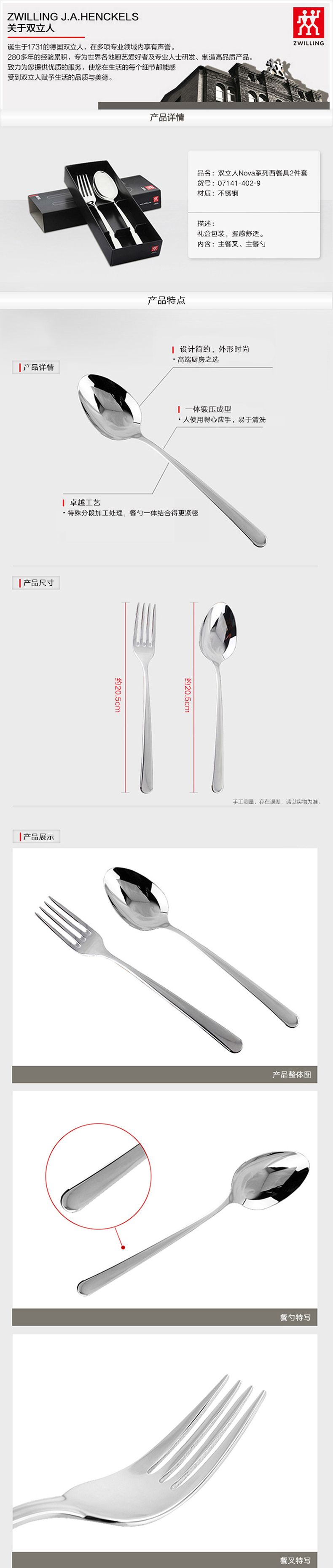 商品名称:双立人 NOVA 西餐具叉勺2件套 07141-402