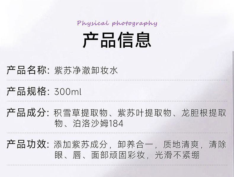 商品名称:花妍丽 紫苏净澈卸妆水 300ml