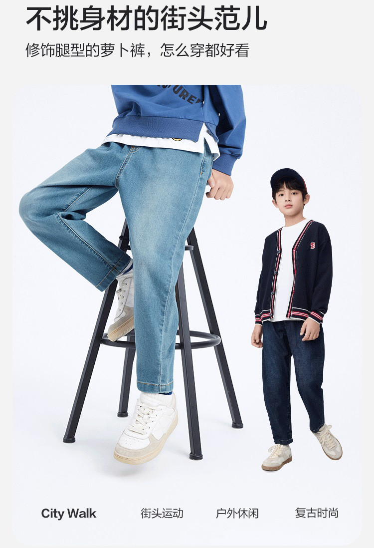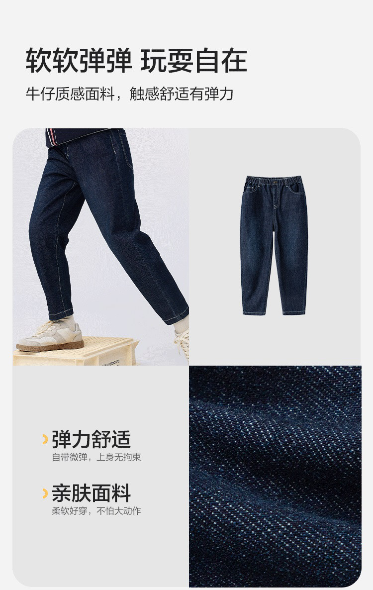 商品名称:弹力萝卜裤童装男童长裤儿童裤子2025款春装中大童牛仔裤小童 259781
