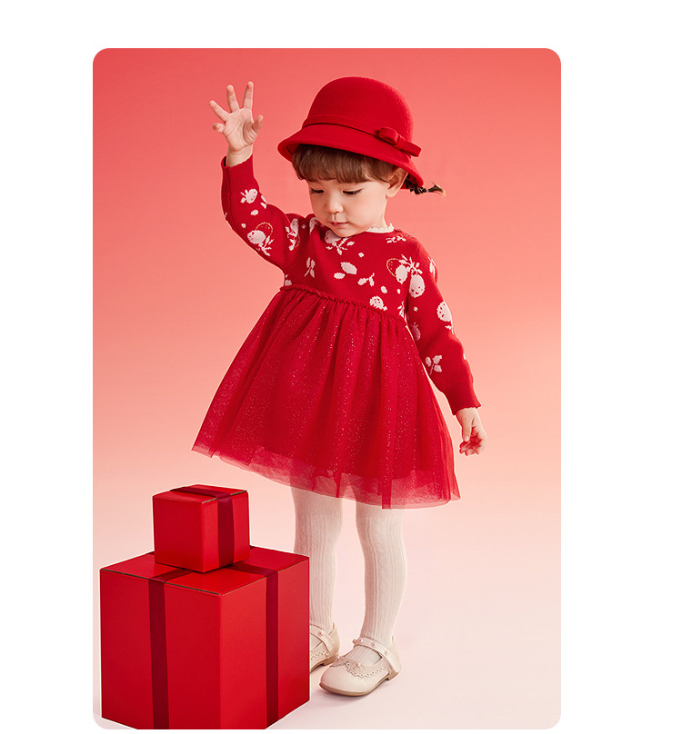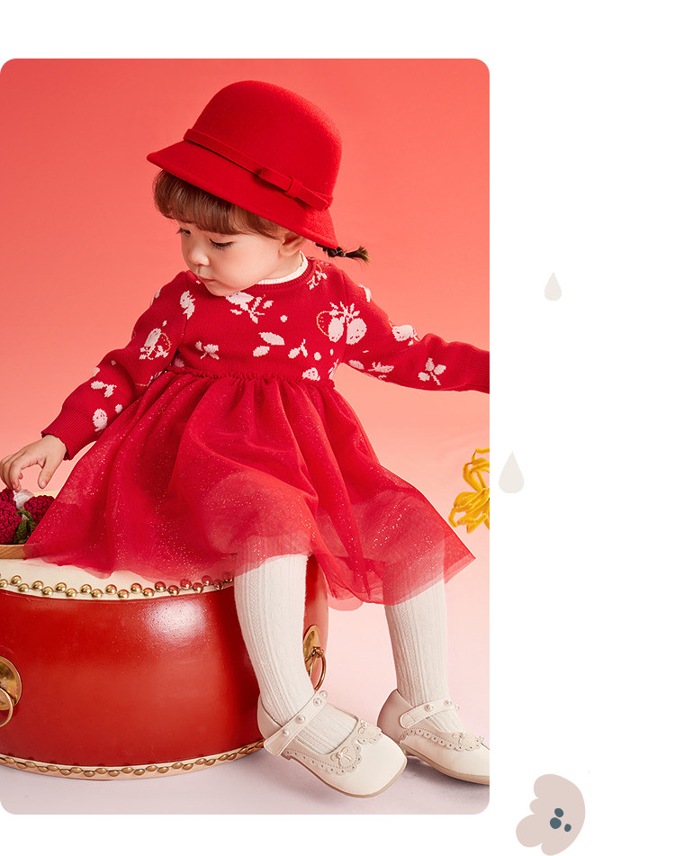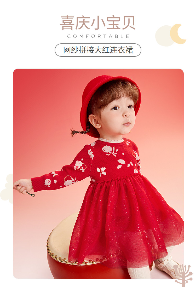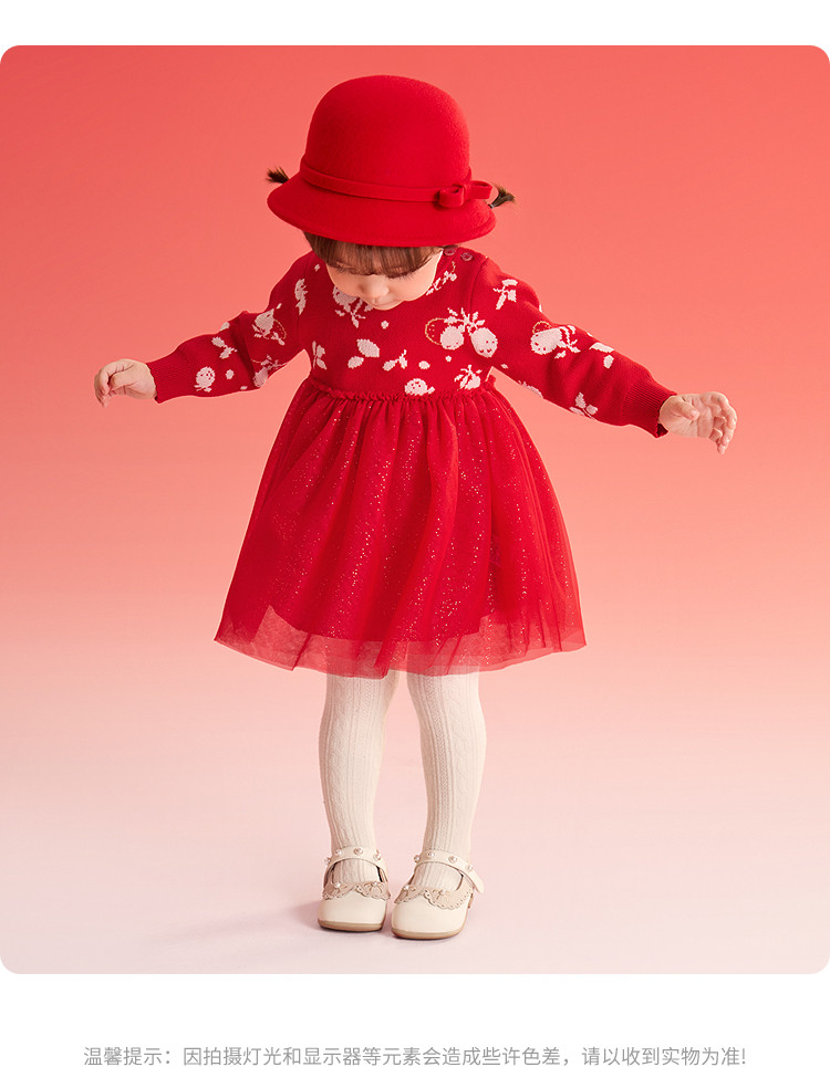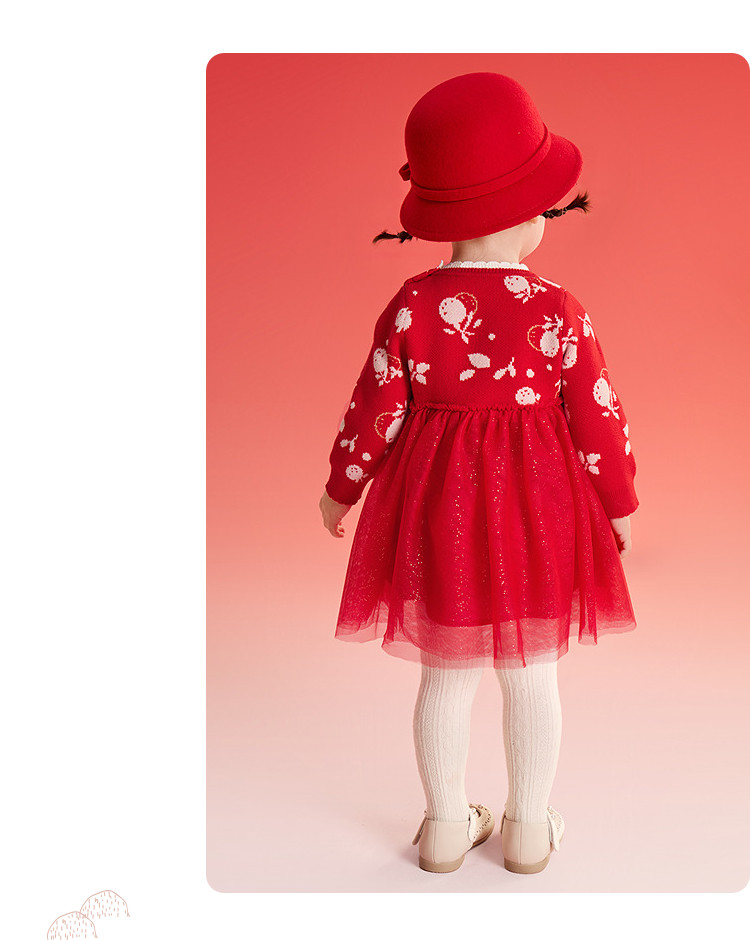 商品名称:国风婴幼针织裙子女童长袖网纱连衣裙2025新款春装甜美洋气 057861