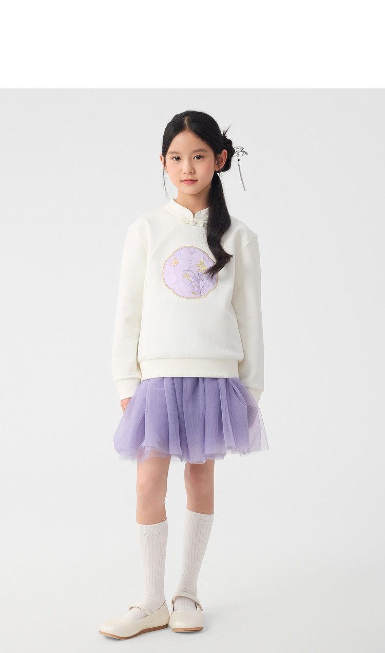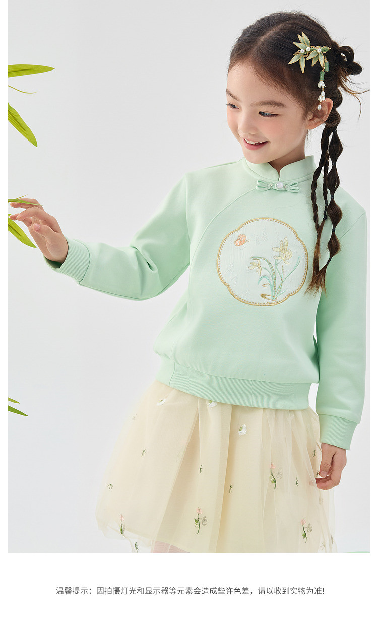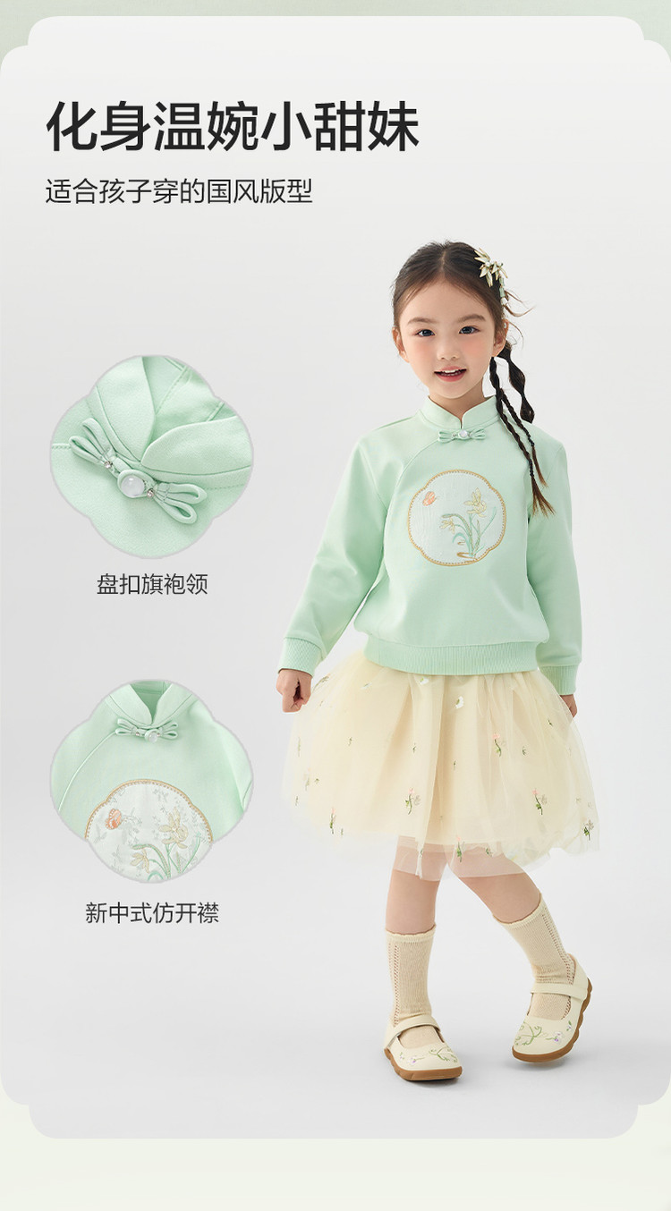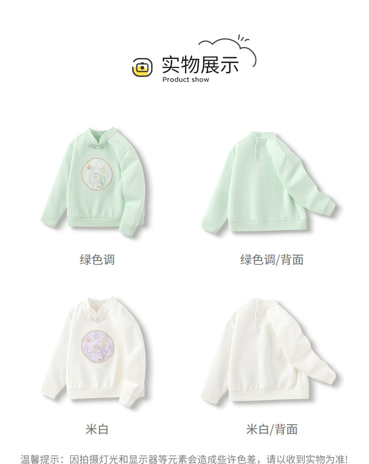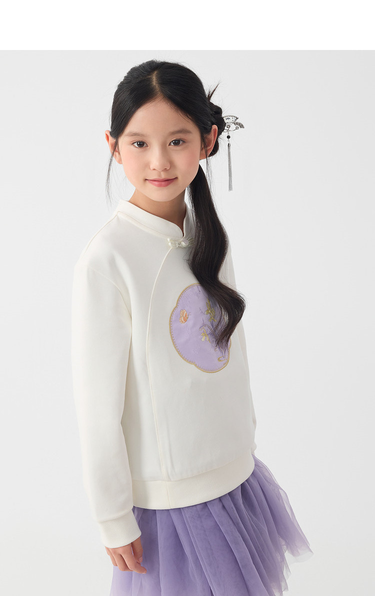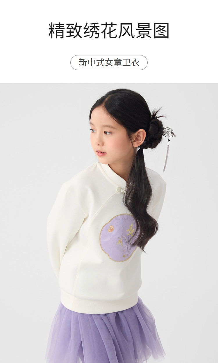 商品名称:新中式女童卫衣儿童长袖上衣2025春新款改良立领刺绣国风盘扣 870981