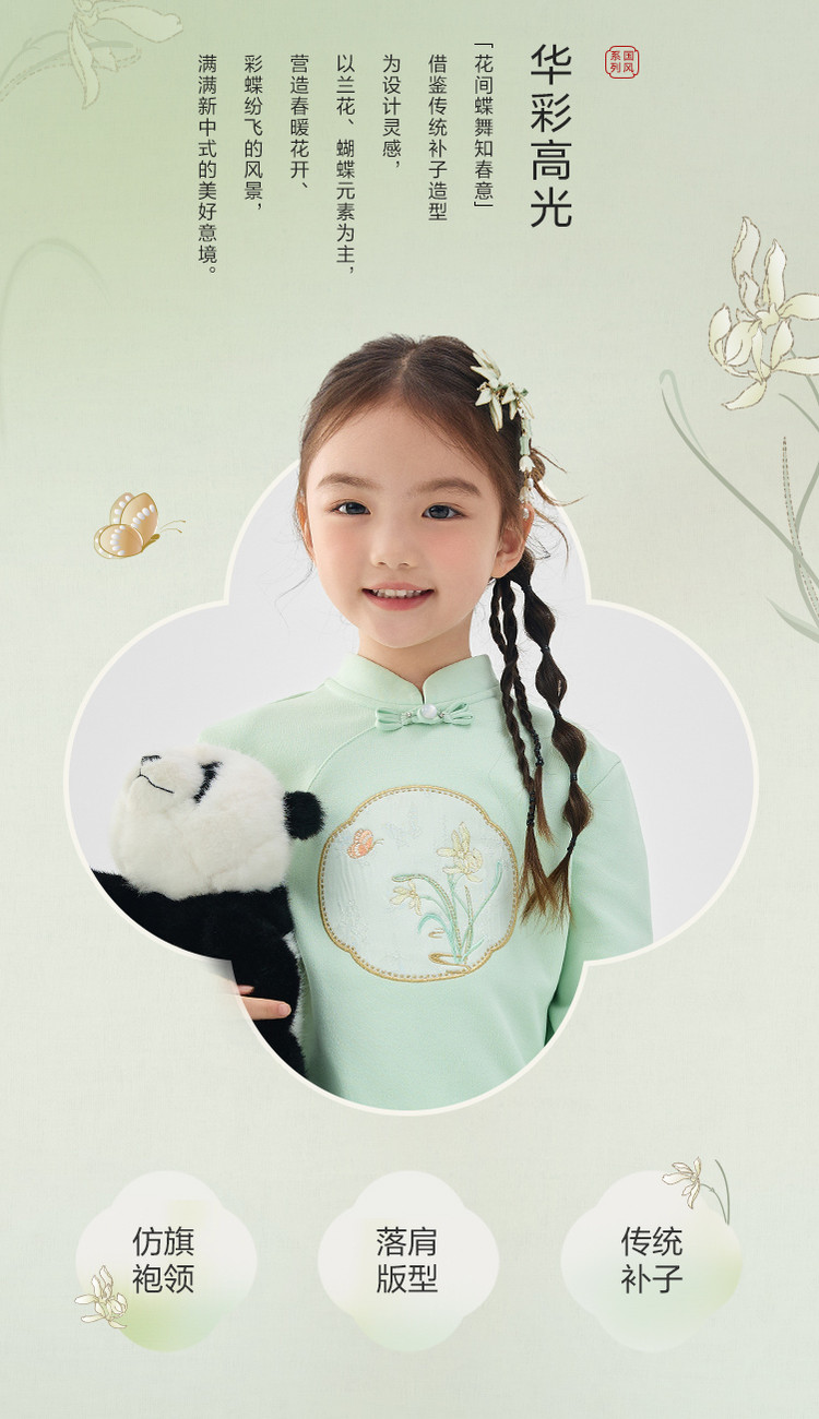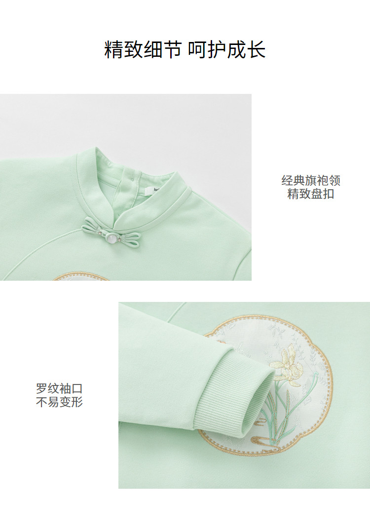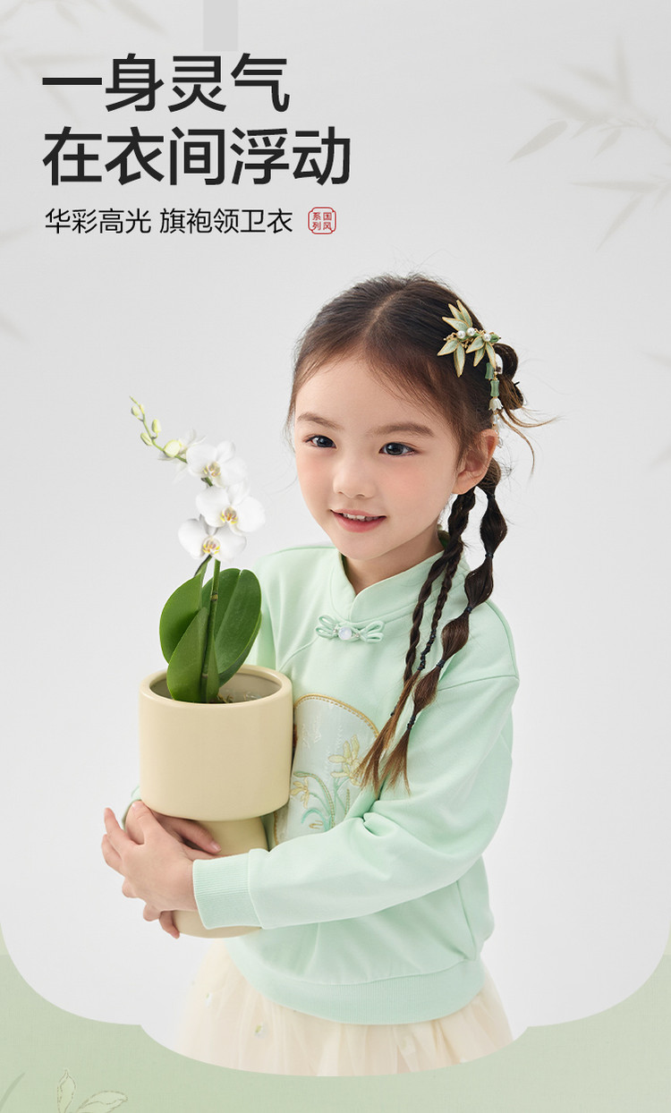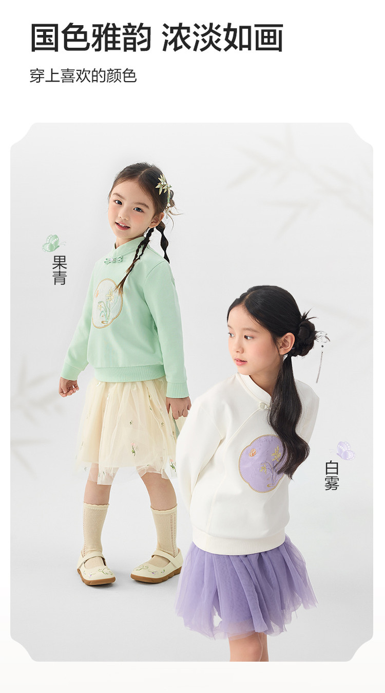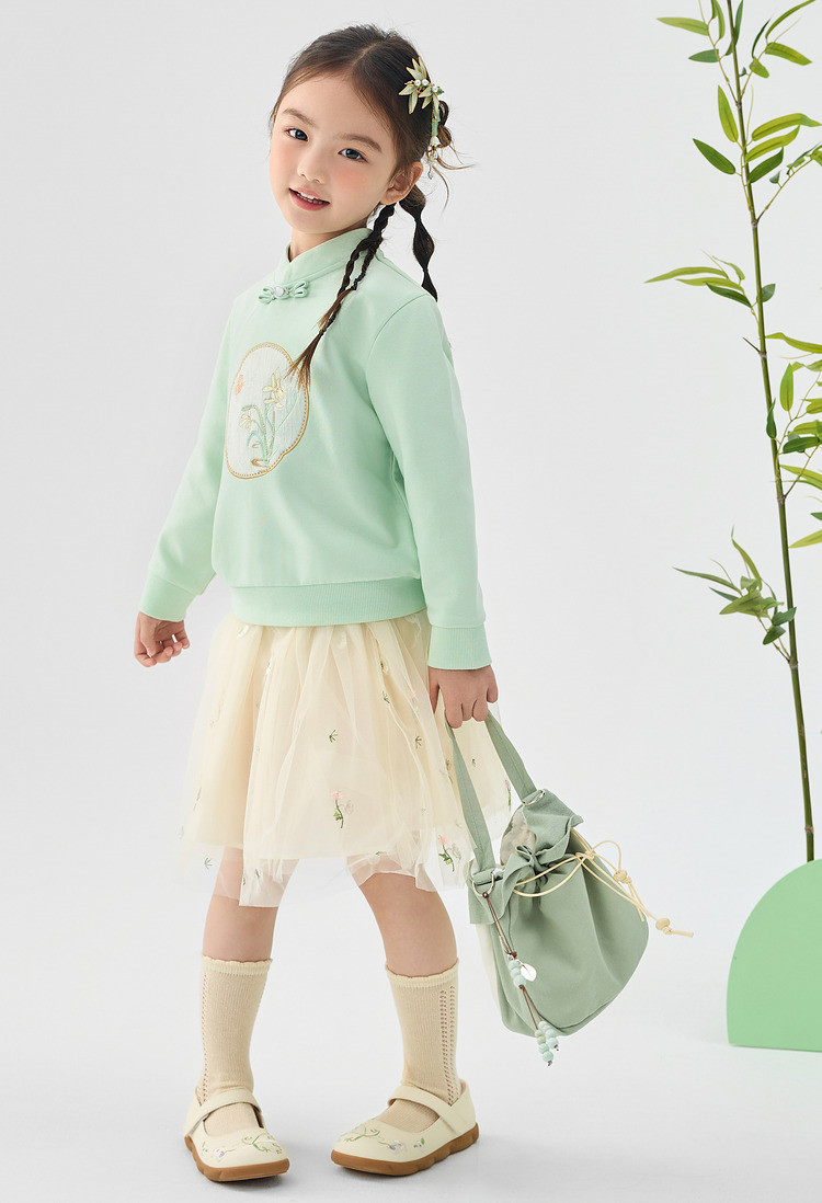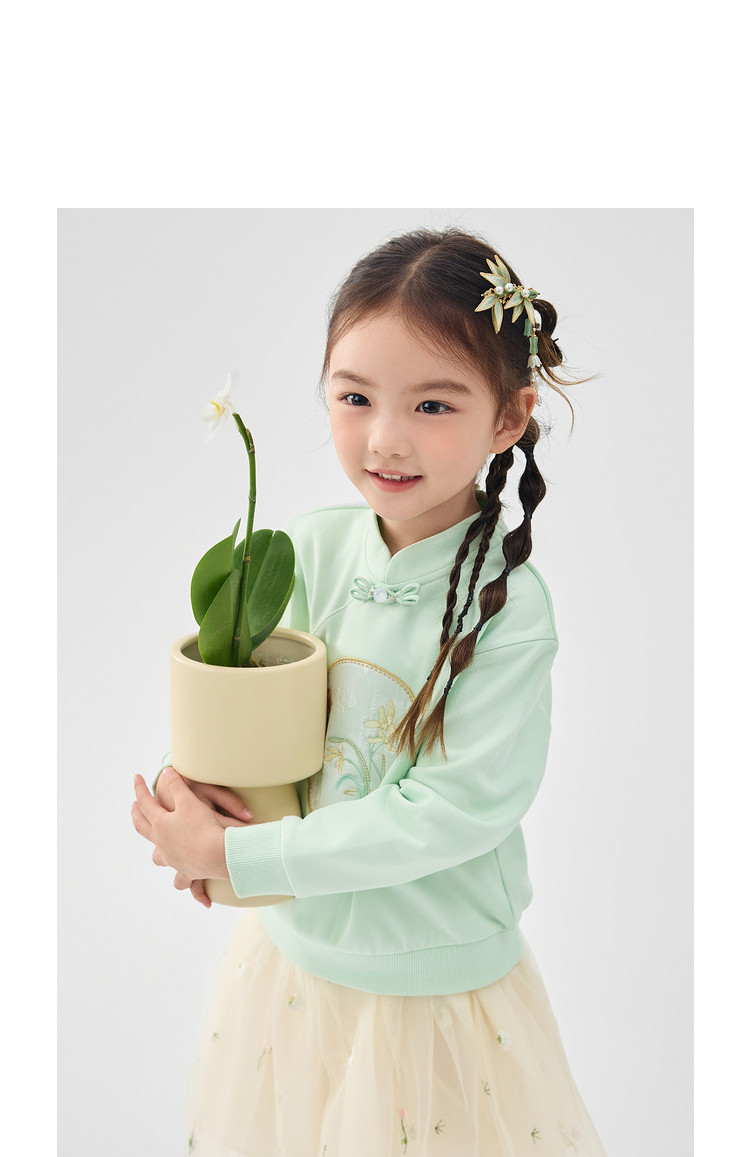 商品名称:新中式女童卫衣儿童长袖上衣2025春新款改良立领刺绣国风盘扣 870981