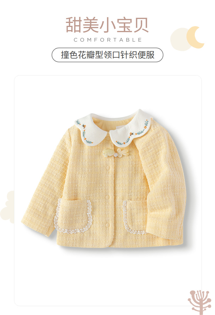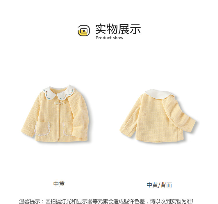 商品名称:撞色花瓣领小香风婴幼外套童装上衣女童便服2025新款春装宝宝 433093