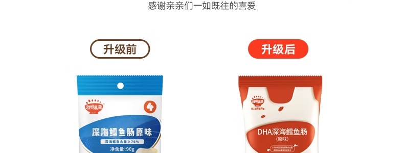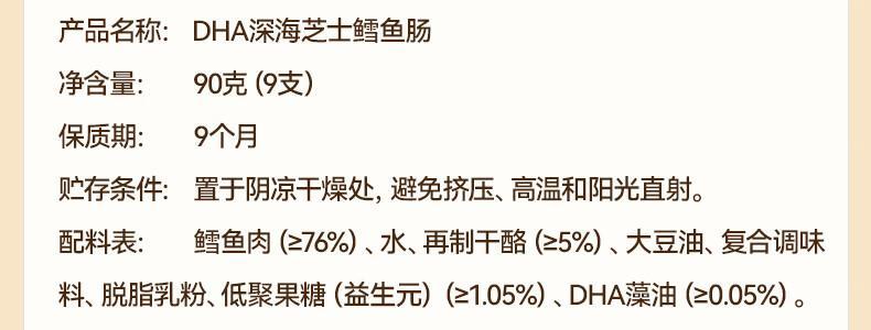 商品名称:秋田满满 DHA深海芝士鳕鱼肠 90g 新老包装随机