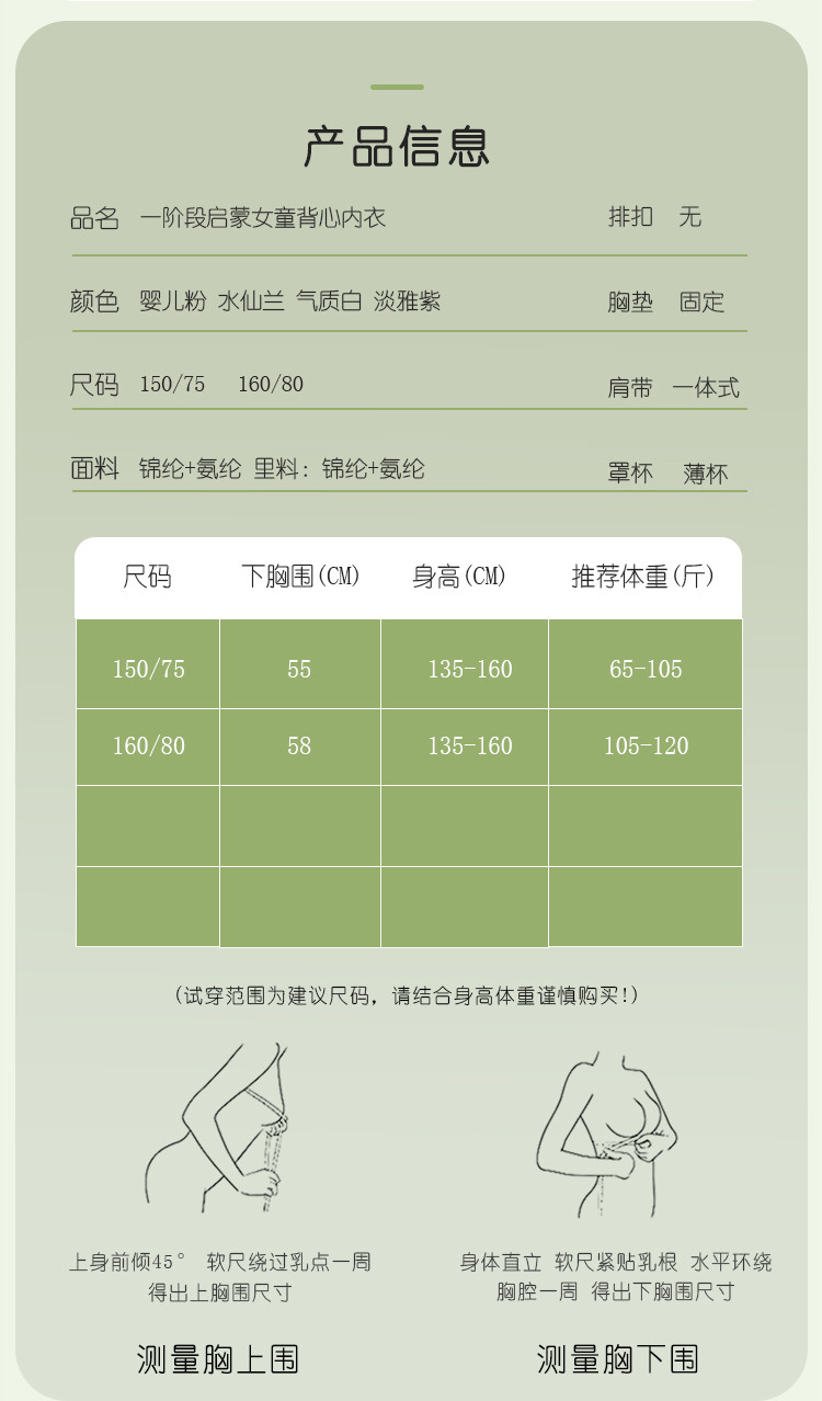 商品名称:【轻薄无痕透气】一阶段学生小背心内衣发育期8-12岁女童文胸 178718