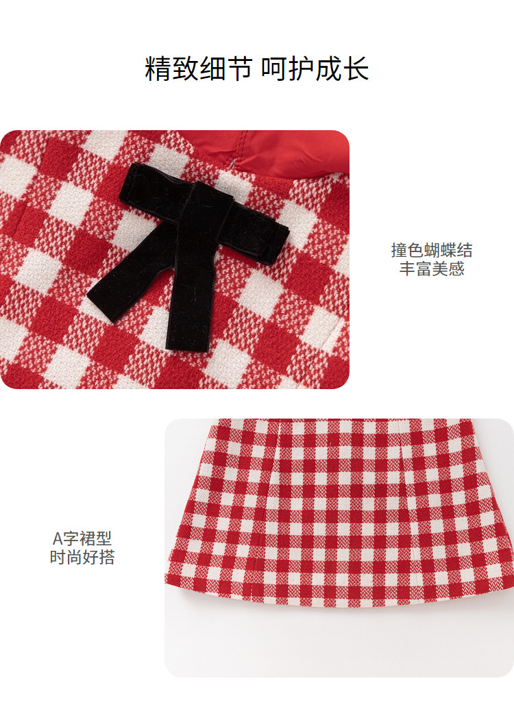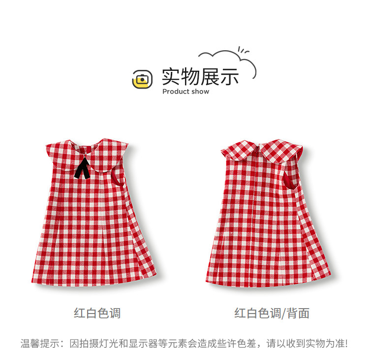 商品名称:复古风棋盘格女童连衣裙儿童A字裙2025春秋新款翻领裙子甜美 413509