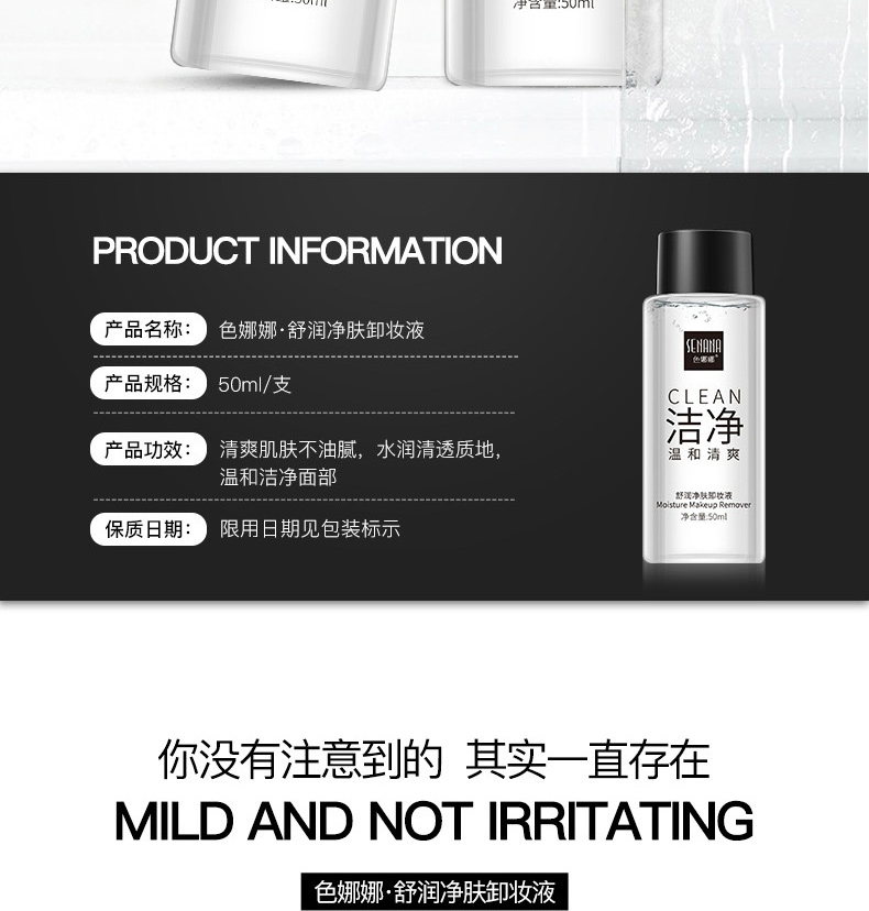 商品名称:色娜娜舒润净肤卸妆液 温和清洁水润洁净 50ml