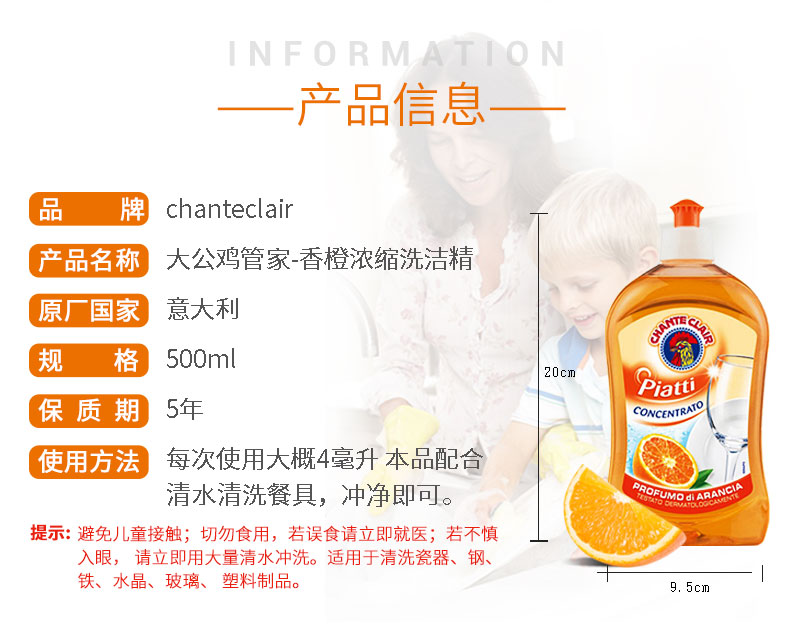 商品名称:大公鸡管家浓缩洗洁精(香橙味)500ml