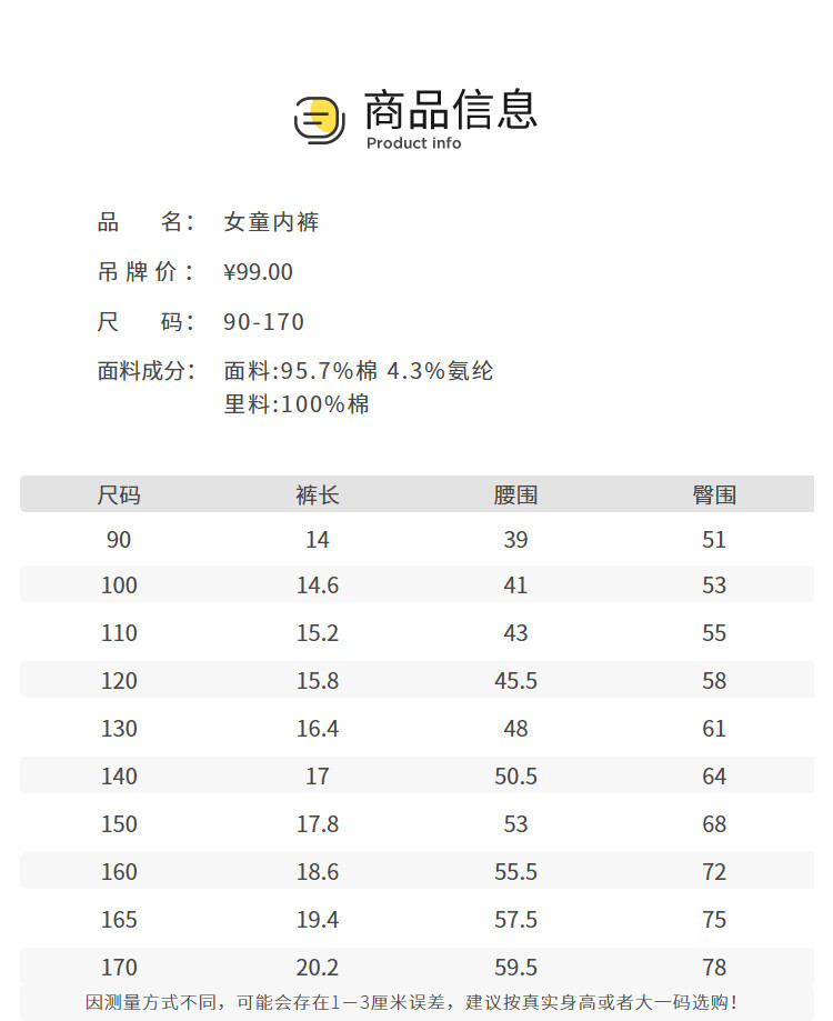 | 尺码 | 身高(cm) | 腰围(cm) | 裤长(cm) | 臀围(cm) | 适合年龄 | 号型 |