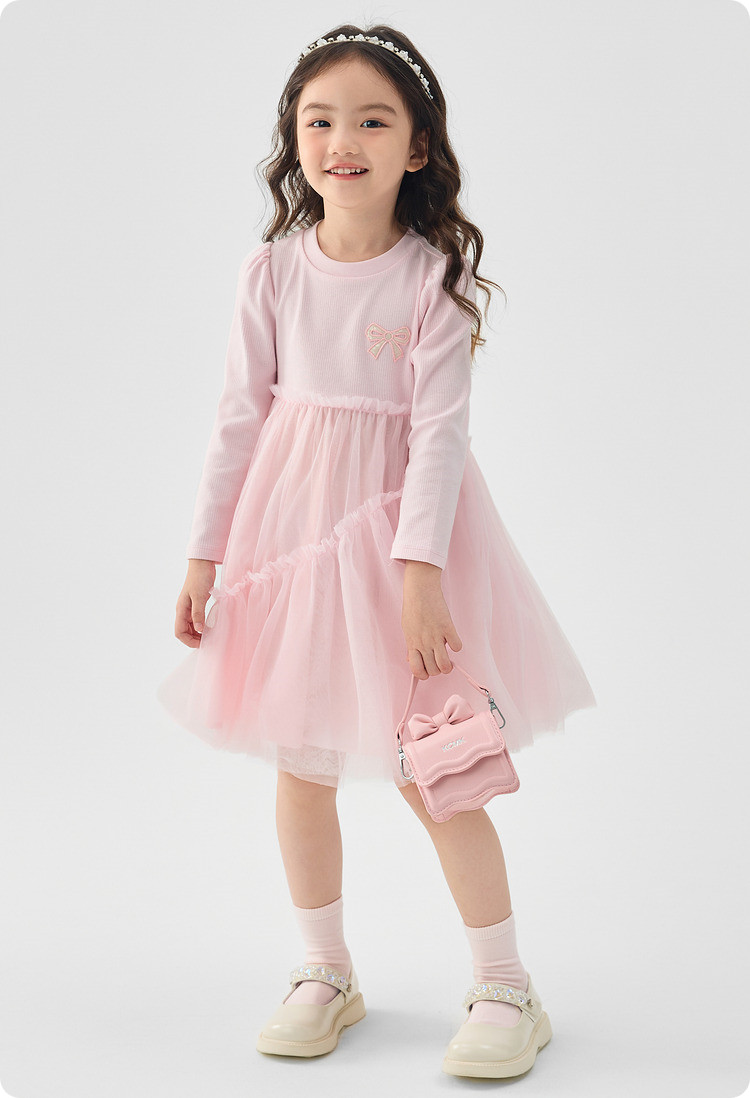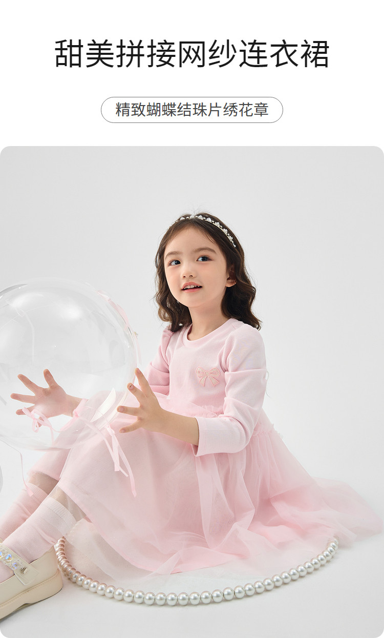 商品名称:女童公主裙高级感连衣裙儿童裙子2025春新款蝴蝶结网纱裙甜美 907845