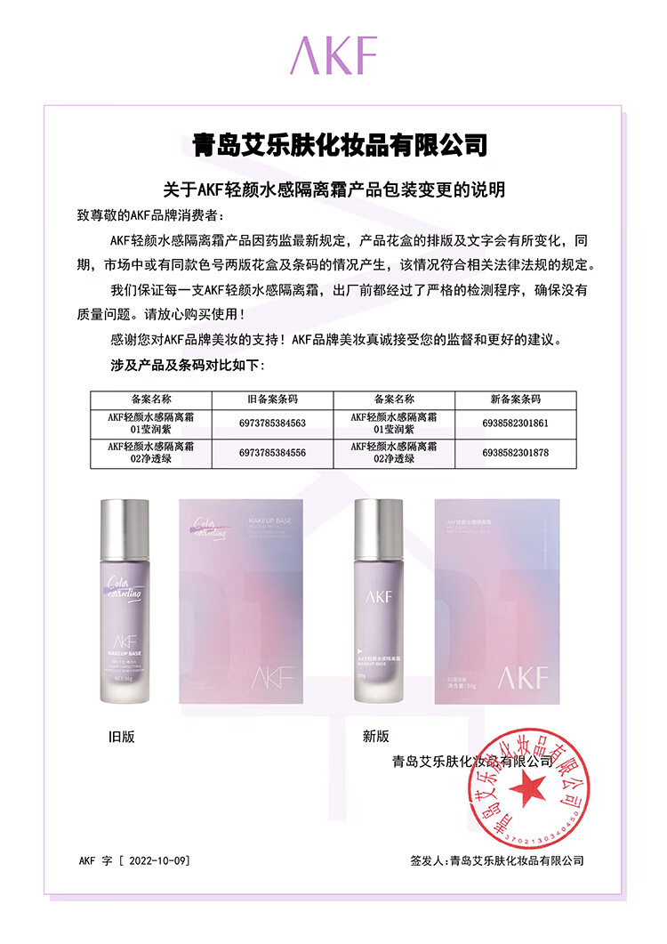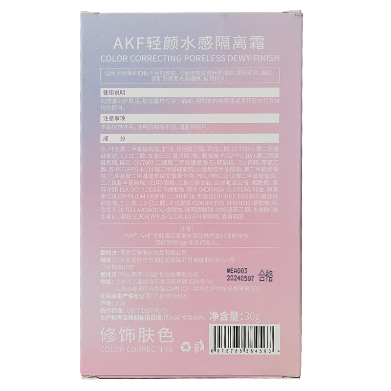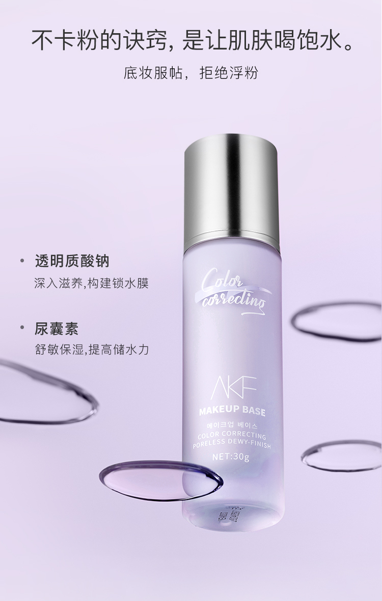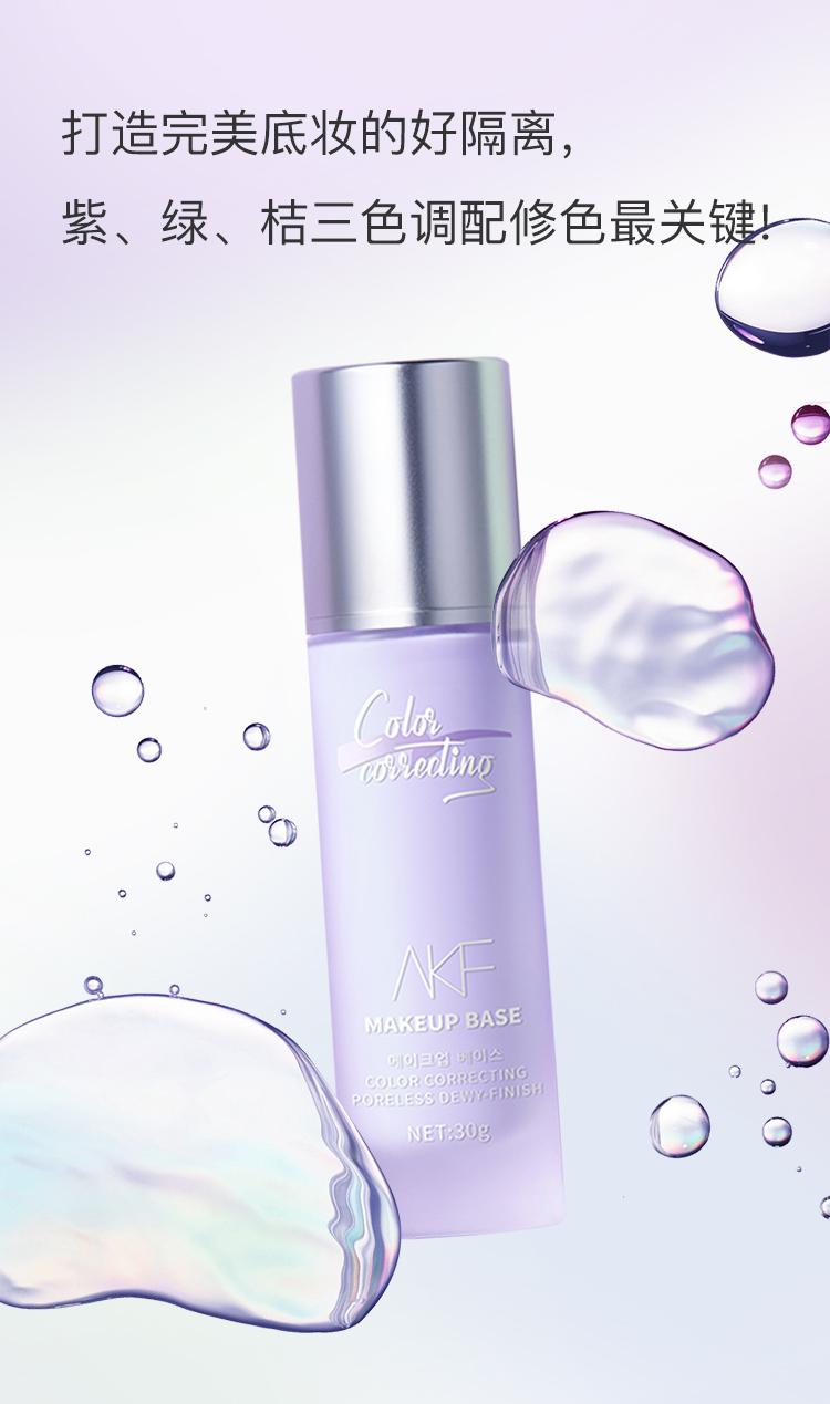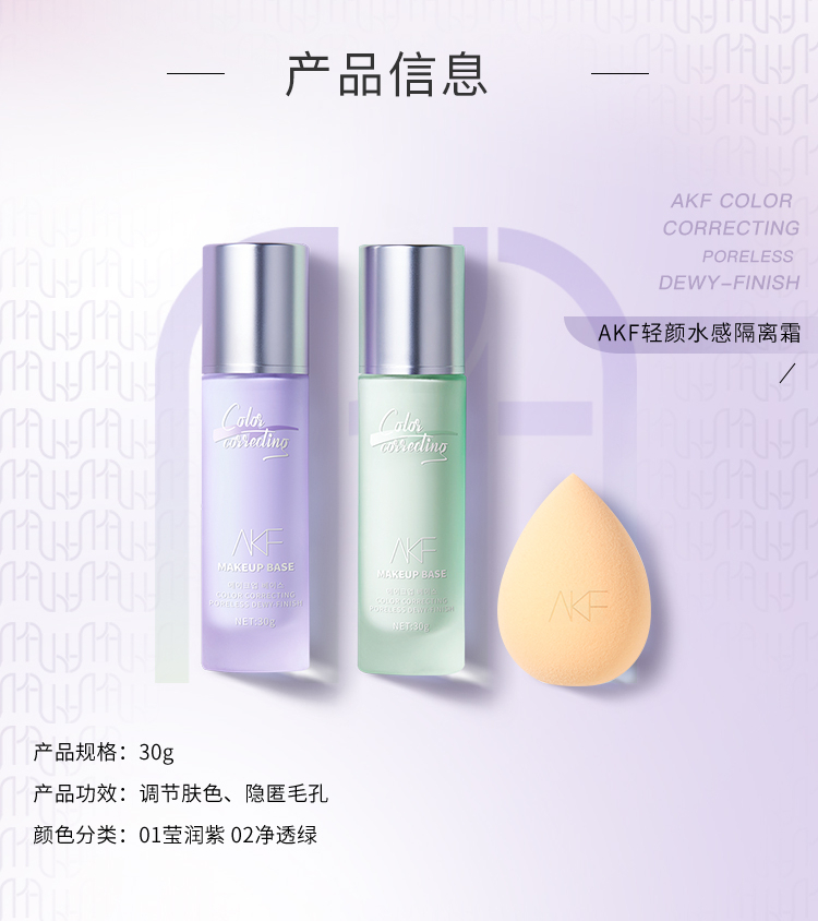 商品名称:akf 隔离霜紫色绿色妆前乳打底遮瑕提亮肤色隐毛孔控油