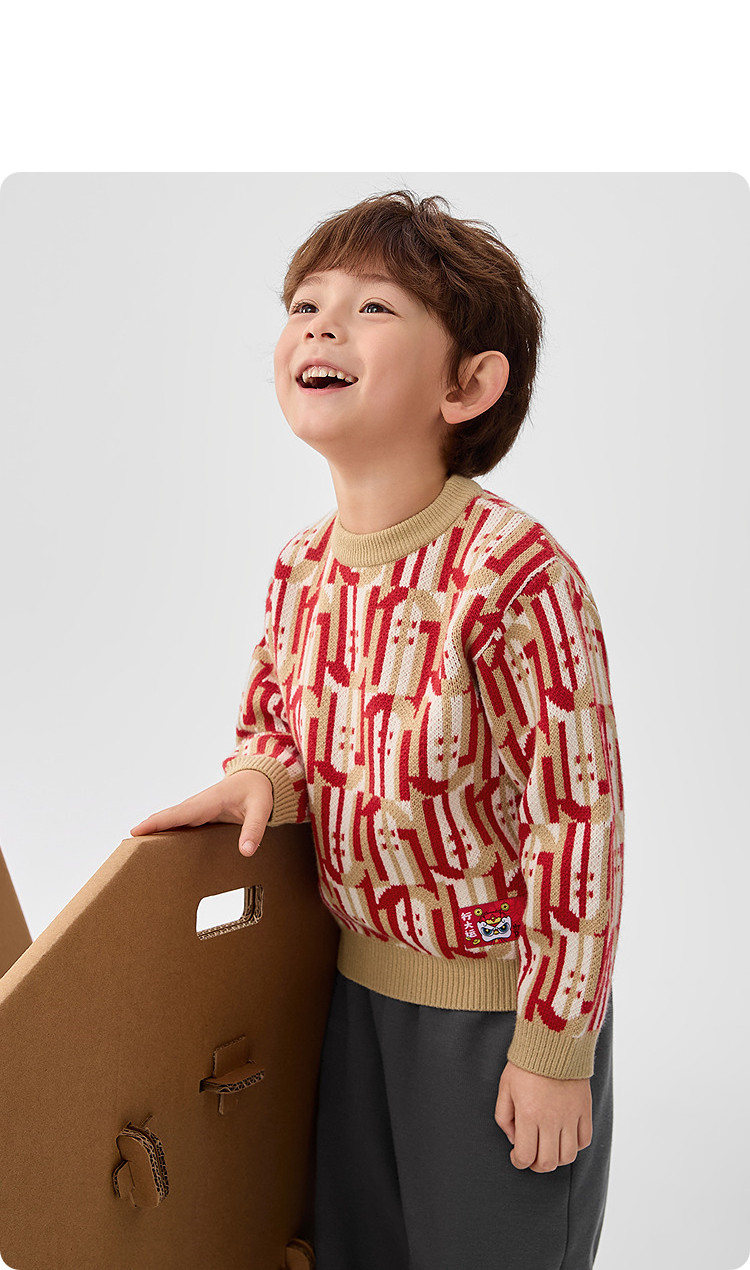 商品名称:国风印花儿童毛衣男童针织衫2025春秋新款童装长袖套头上衣 286533
