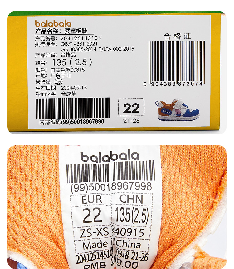 22码(脚长13.5/内长14.7)