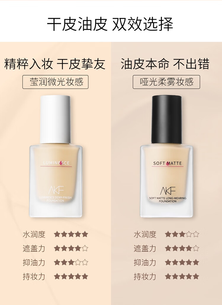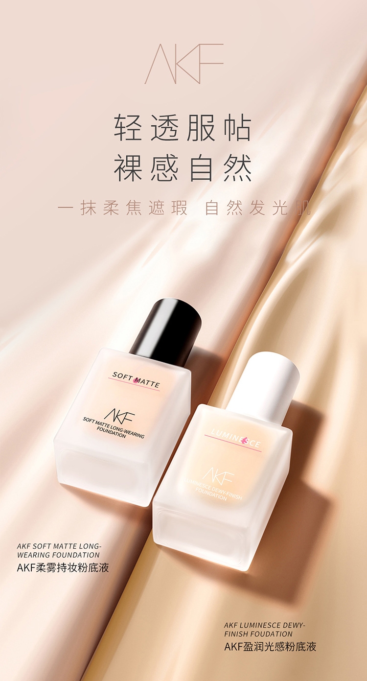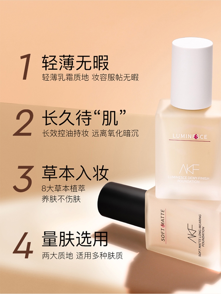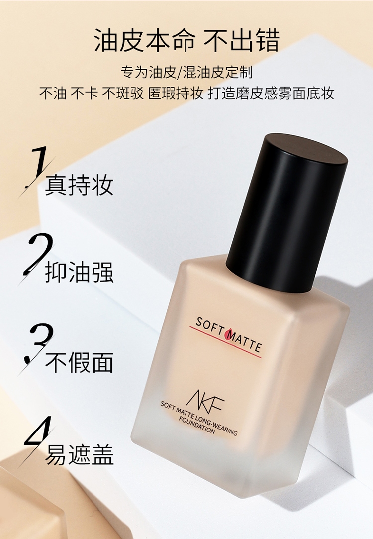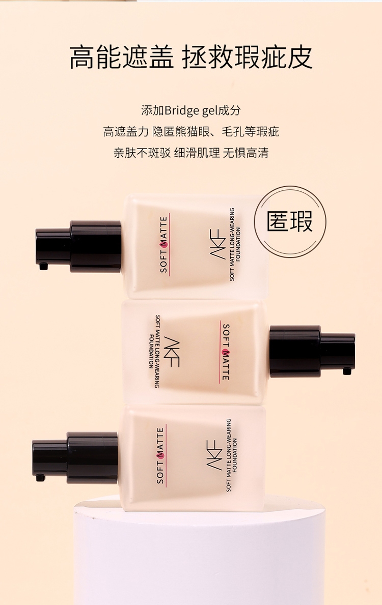 商品名称:AKF 柔雾持妆粉底液 35g 哑光持久服帖不脱妆遮瑕控油粉底液