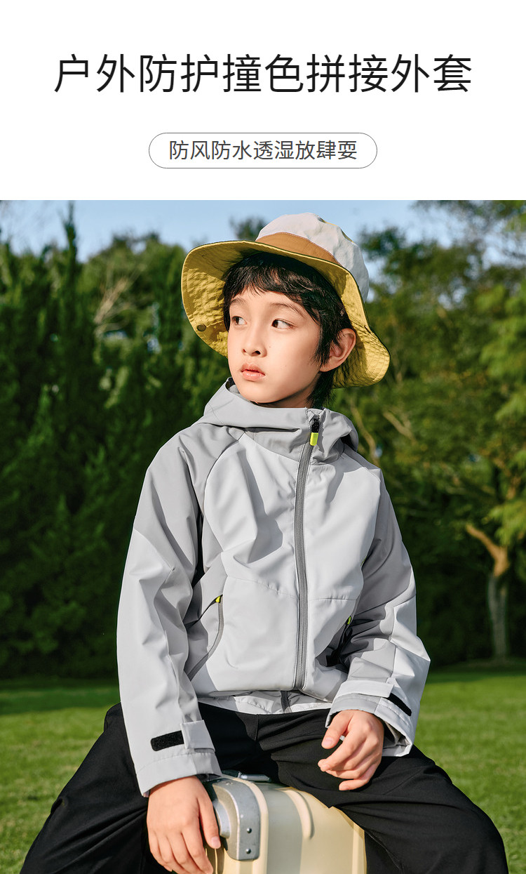 商品名称:防风防水透湿儿童外套男童拼接撞色开衫便服2025春季新款童装 814917