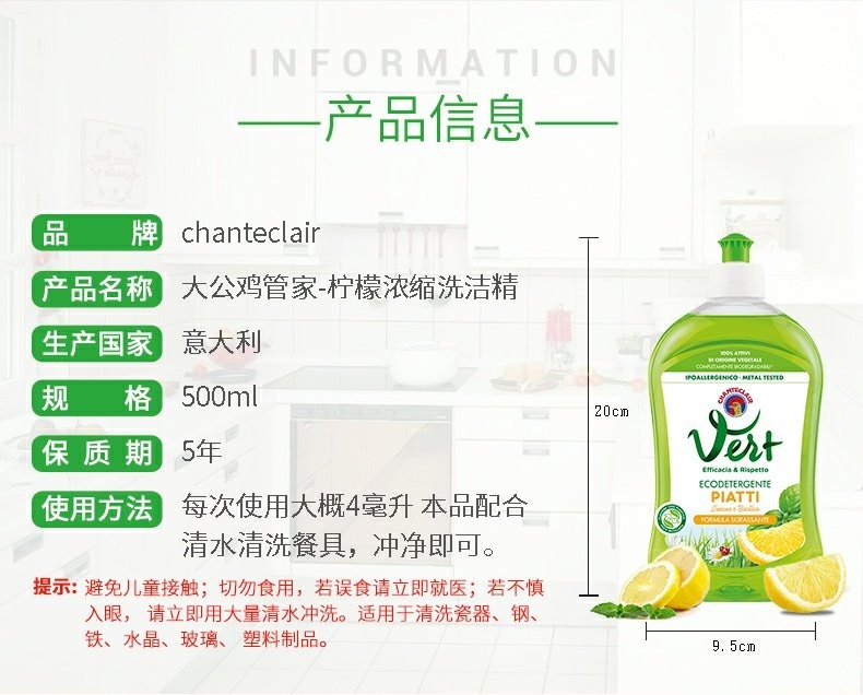 商品名称:大公鸡管家浓缩洗洁精(柠檬味)500ml