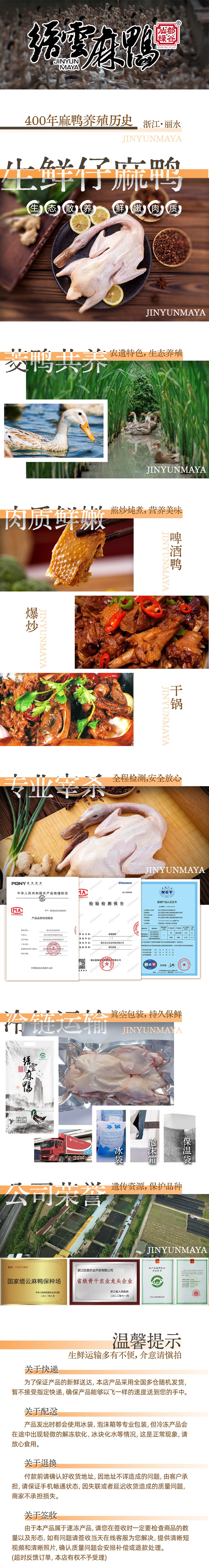 商品名称:仙都绿谷冻品仔鸭1.8-2斤