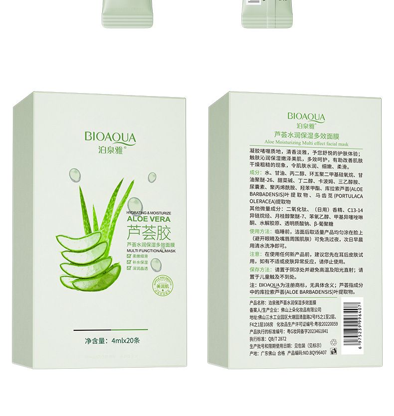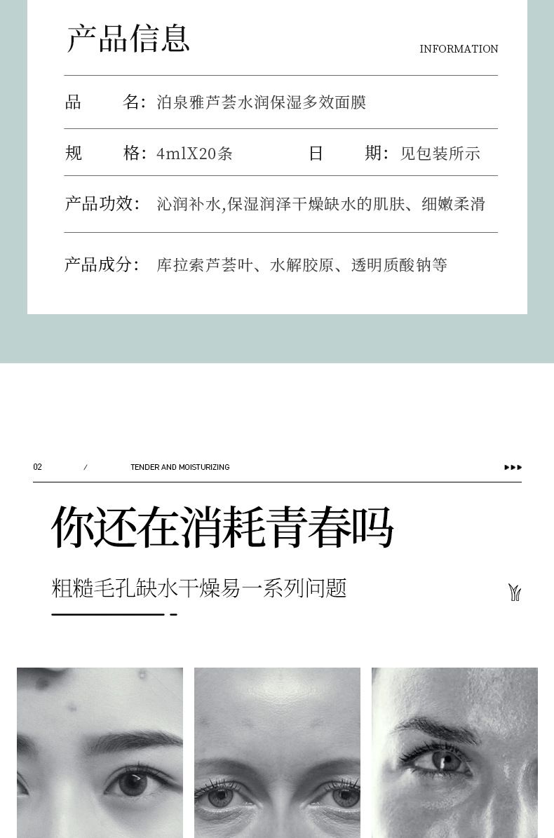 商品名称:泊泉雅 芦荟水润保湿多效面膜 4mlx20条