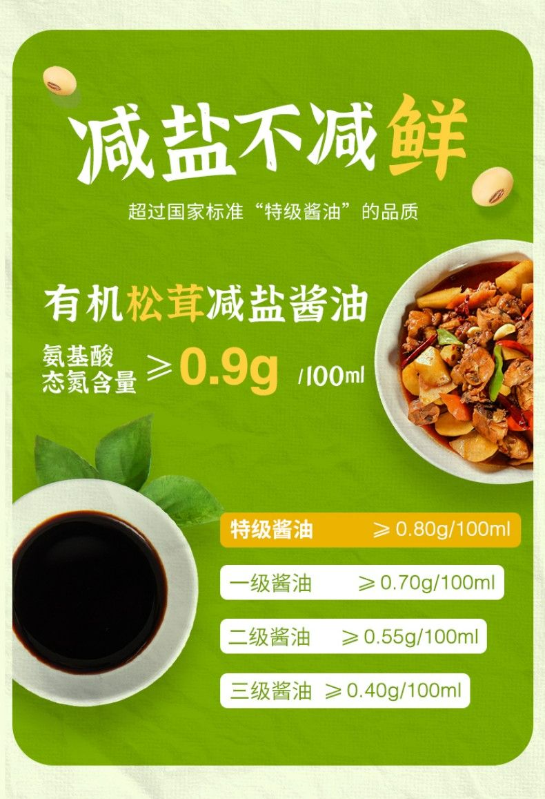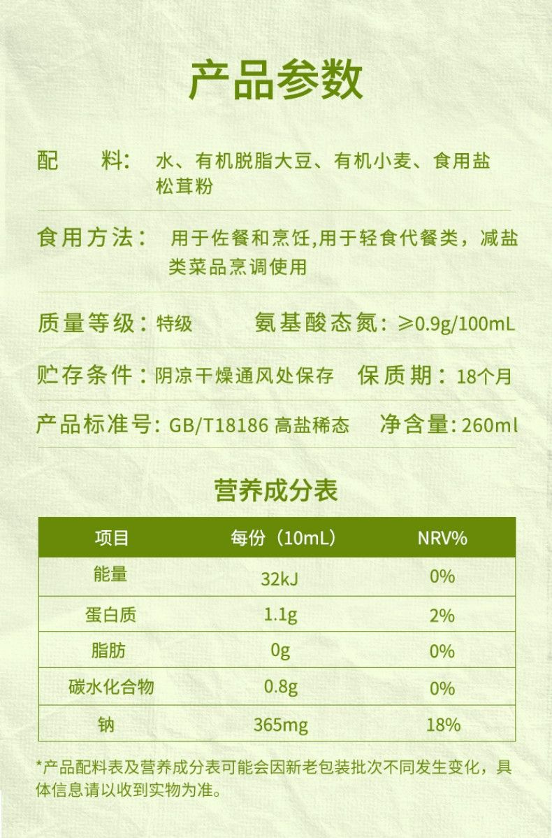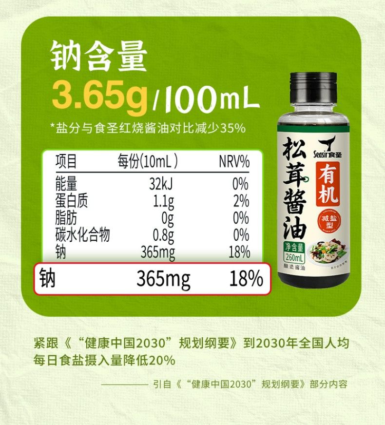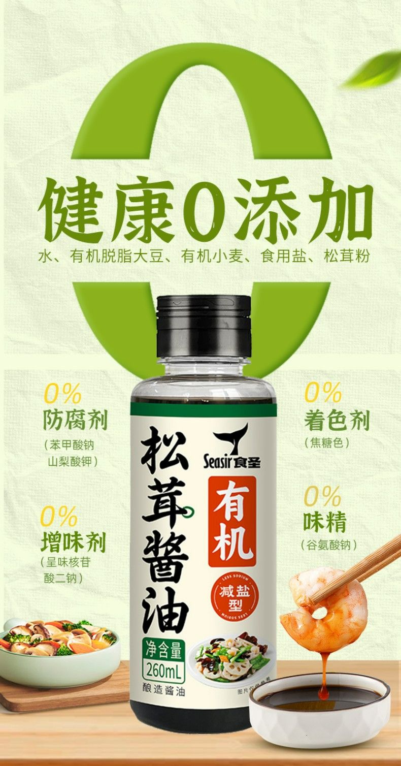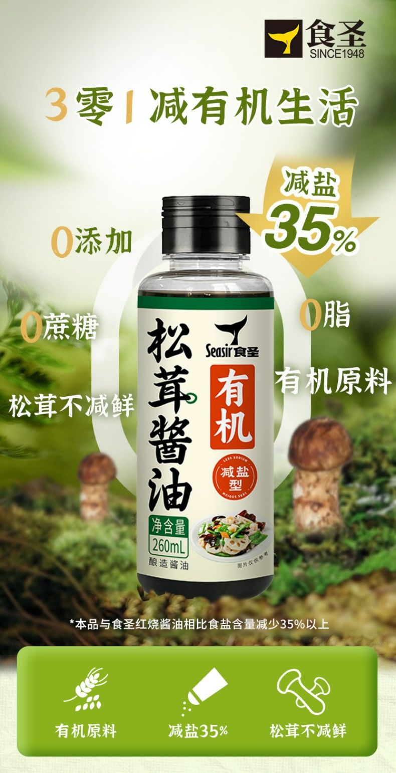 2瓶装食圣 有机松茸减盐 酱油260ml*2
