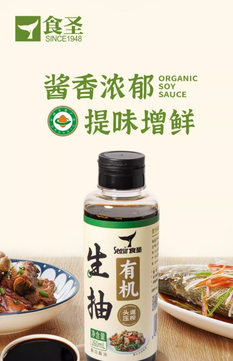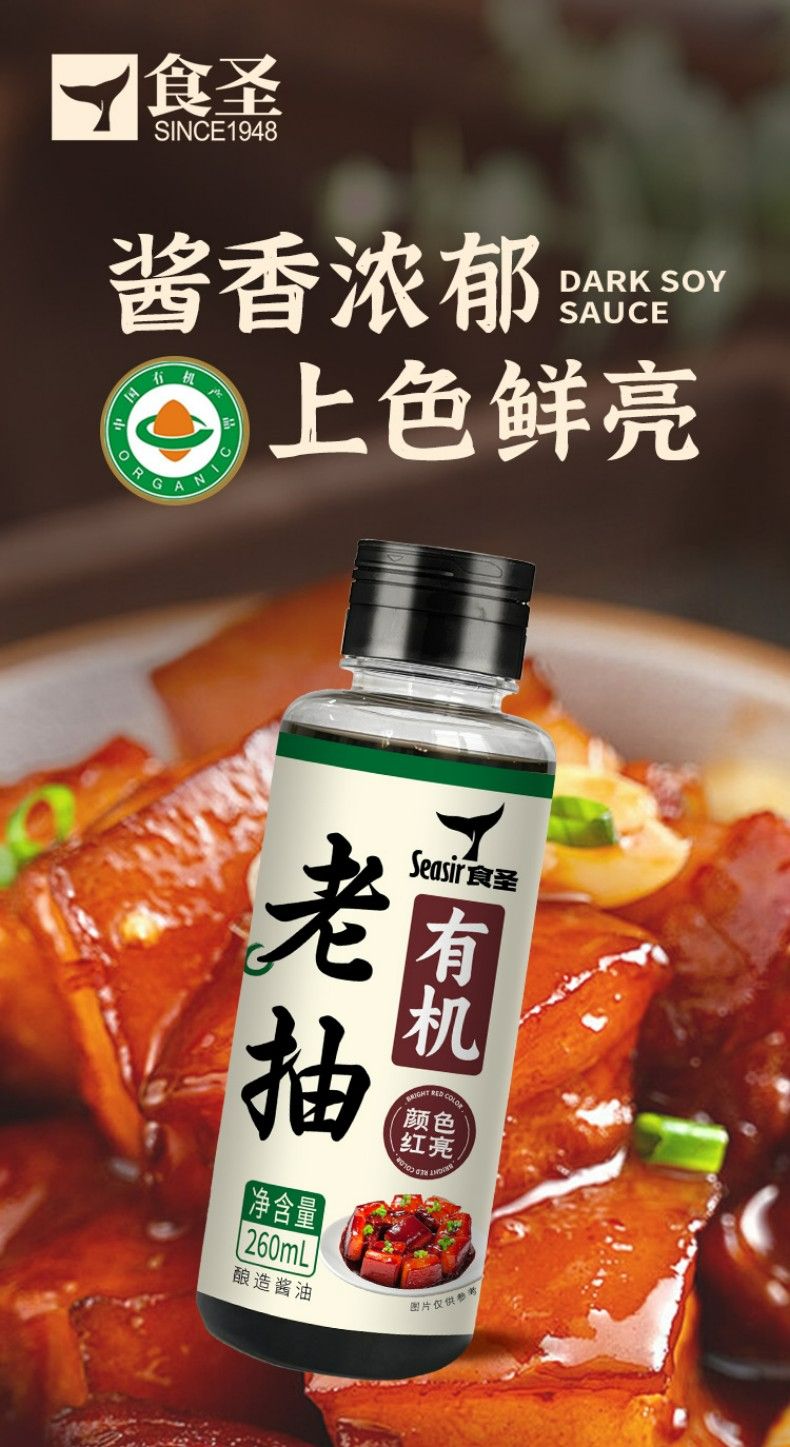 2瓶装食圣 有机老抽酱油 260ml*2