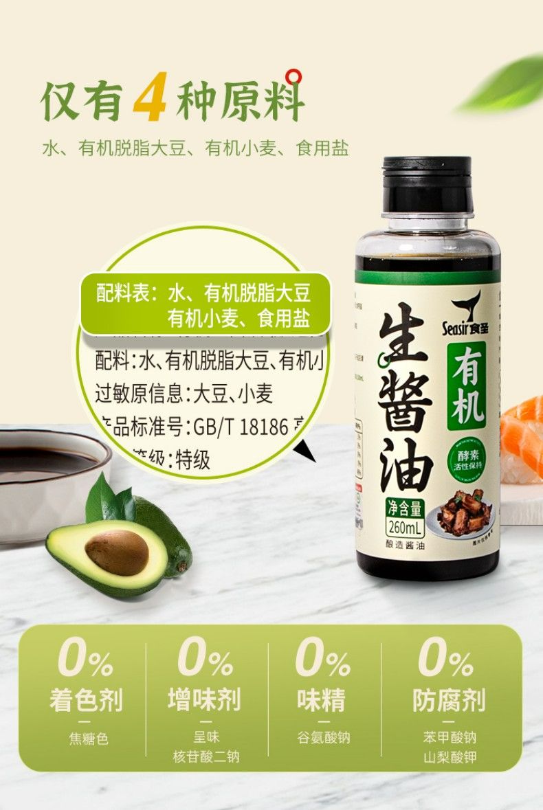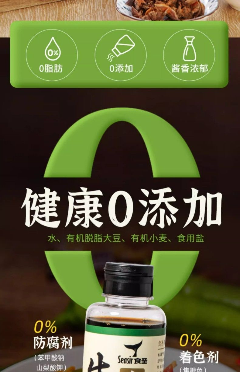 商品名称:食圣 有机系列0添加 精品酱油2瓶装