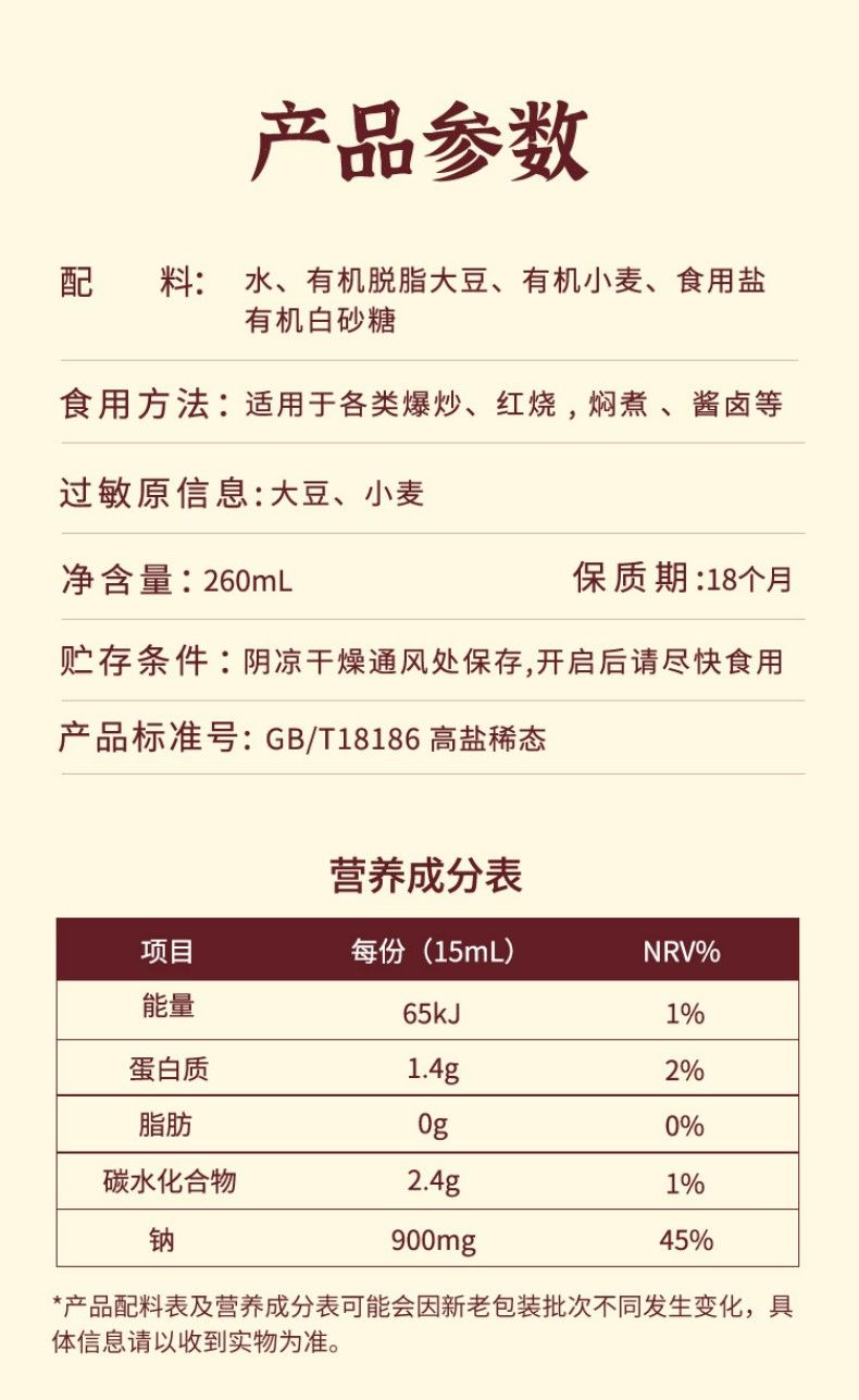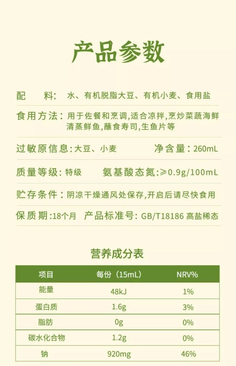 2瓶装食圣有机生酱油260ml*2