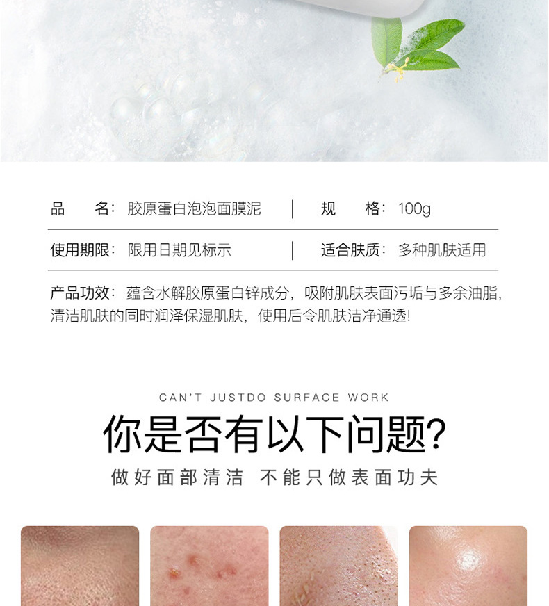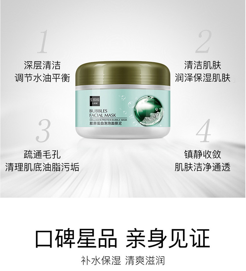 商品名称:色娜娜胶原蛋白泡泡面膜泥 保湿润泽洁净水润 100g