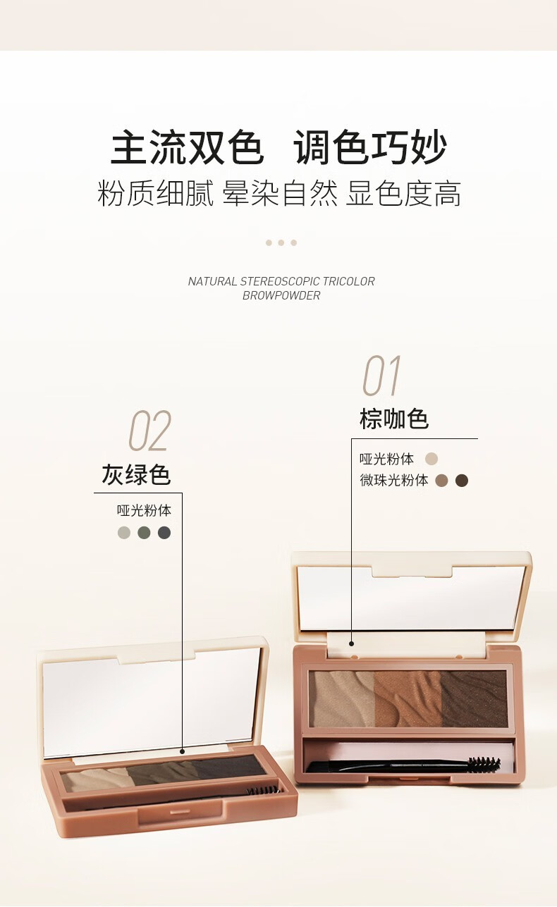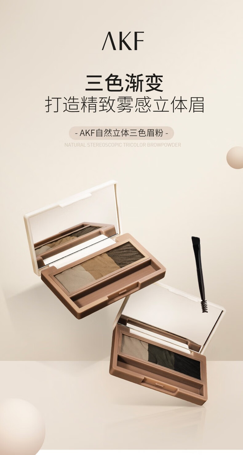 AKF 三色眉粉自然立体柔雾野生眉上色均匀粉质细腻不易脱妆平价