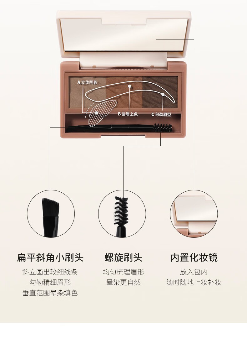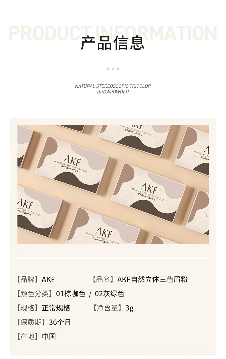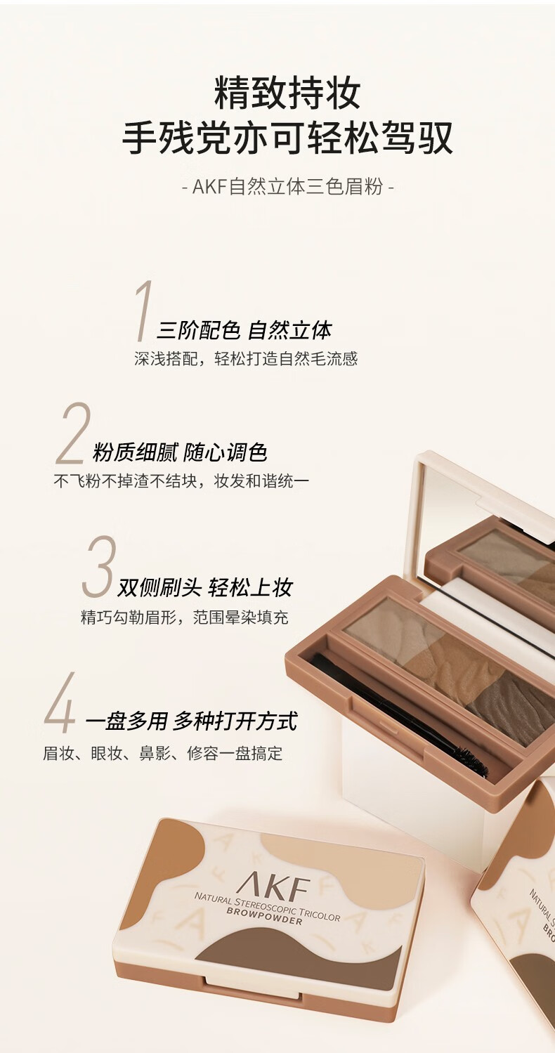 商品名称:AKF 三色眉粉自然立体柔雾野生眉上色均匀粉质细腻不易脱妆平价