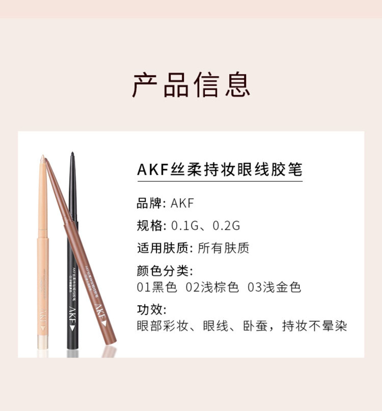 商品名称:AKF 丝柔持妆眼线胶笔防水不易晕染持久极细液笔初学者卧蚕