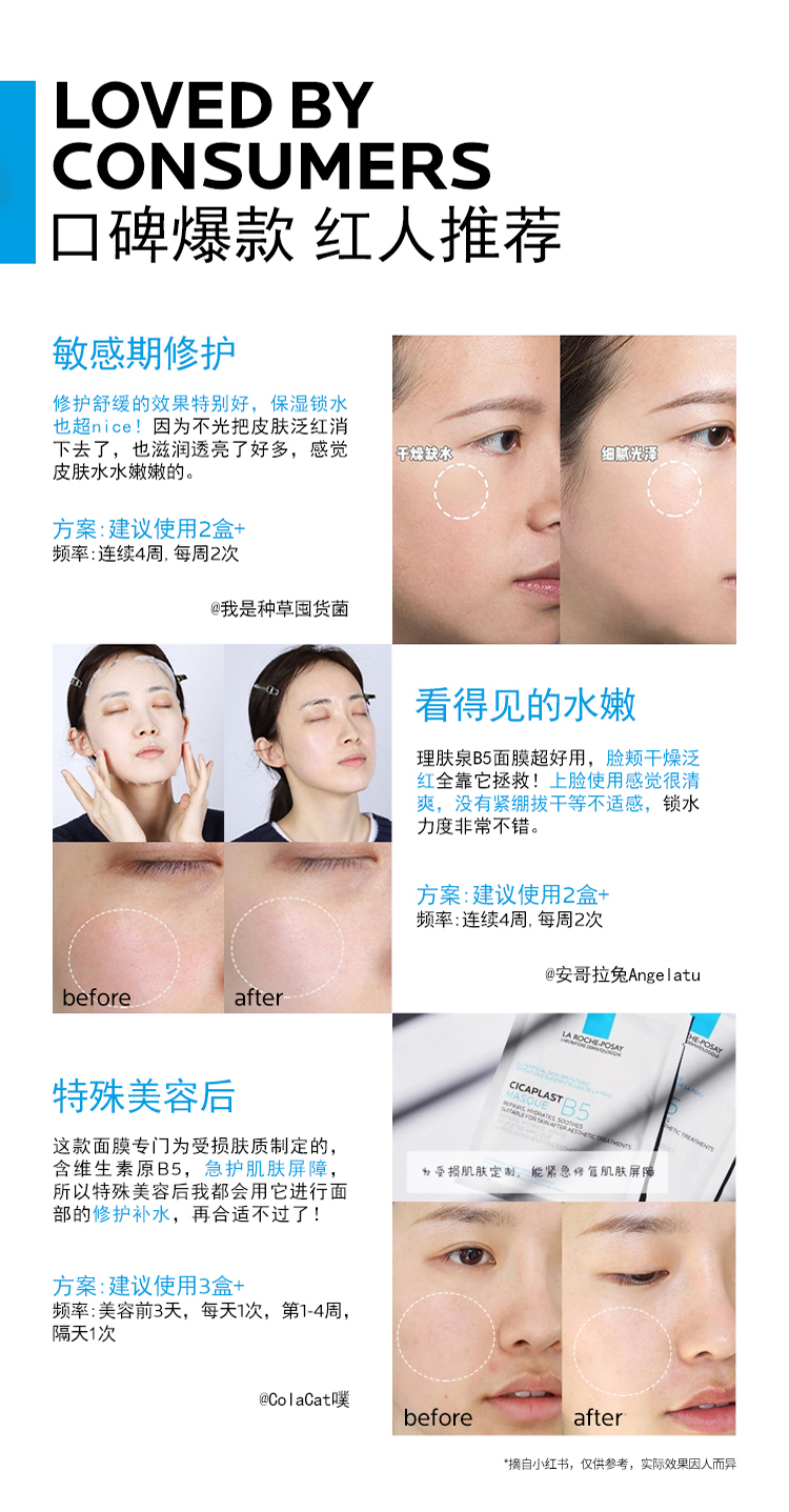 商品名称:理肤泉B5多效保湿面膜(B5面膜)25g*5 2盒装