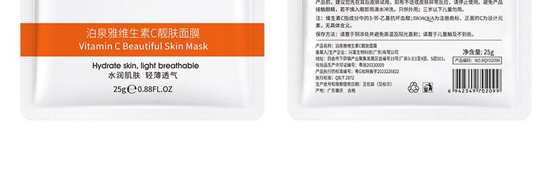 商品名称:泊泉雅 维生素C嫩肤面膜25g