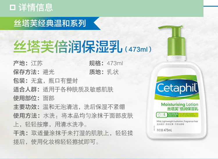 商品名称:Cetaphil/丝塔芙保湿润肤乳473ml