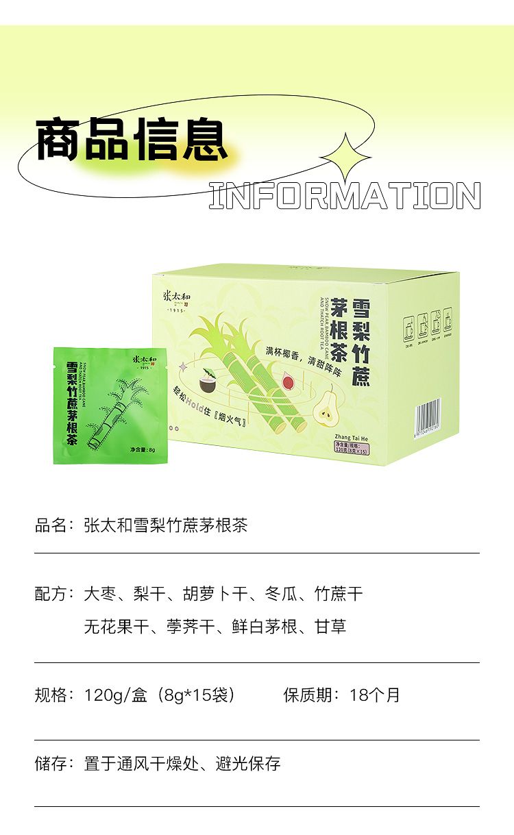 商品名称:张太和 雪梨竹蔗茅根茶 120g*2盒