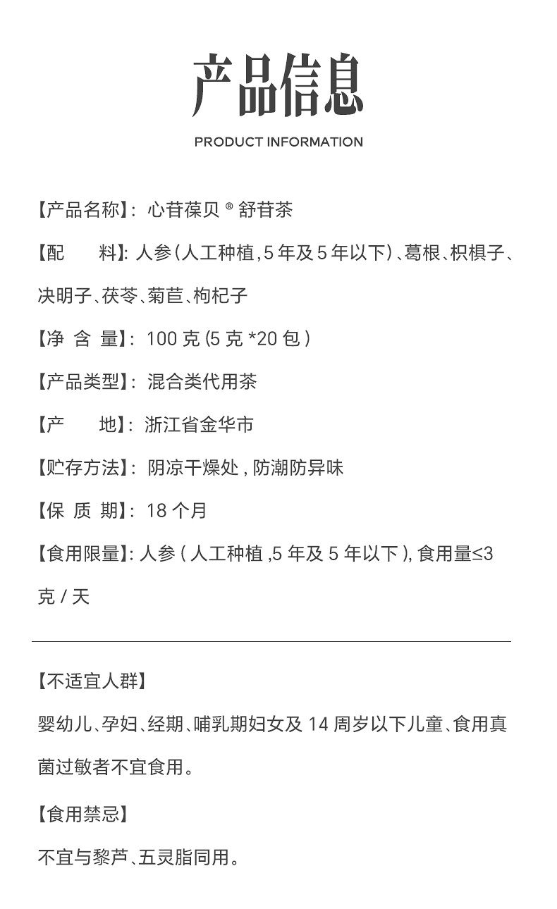 商品名称:张太和 心苷葆贝舒苷茶 100g(5g*20)/袋*2袋