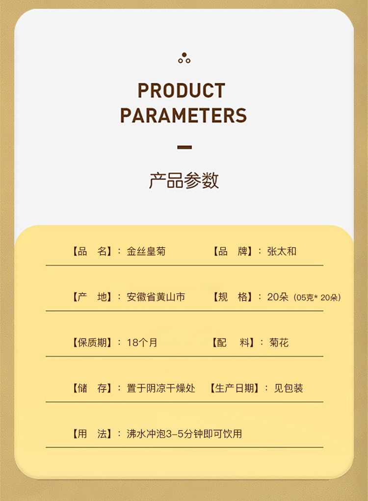 商品名称:张太和 金丝皇菊 20朵盒装*3盒