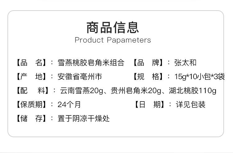 商品名称:张太和 桃胶雪燕皂角米三宝组合 150g*3袋