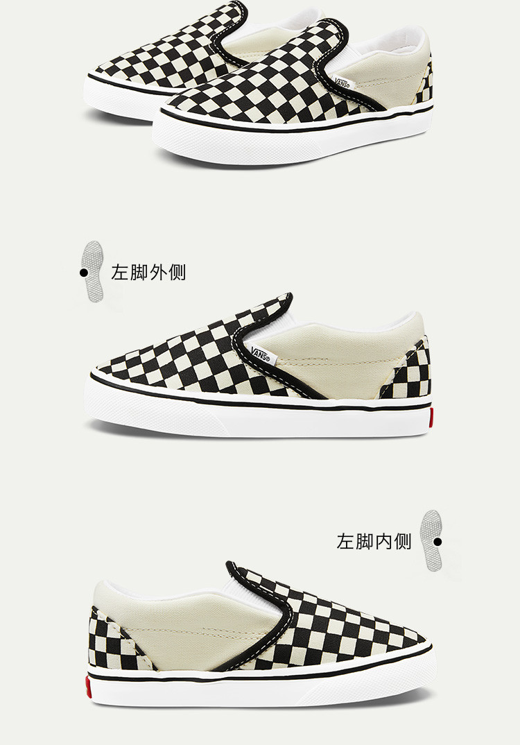 商品名称:官方【品牌直供】 Slip-On黑白棋盘格舒适一脚蹬小童帆布鞋 949003