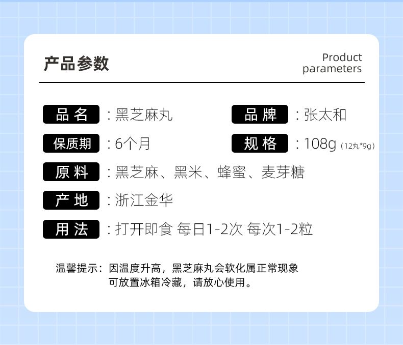 商品名称:张太和 黑芝麻丸 108g(12丸)*3袋
