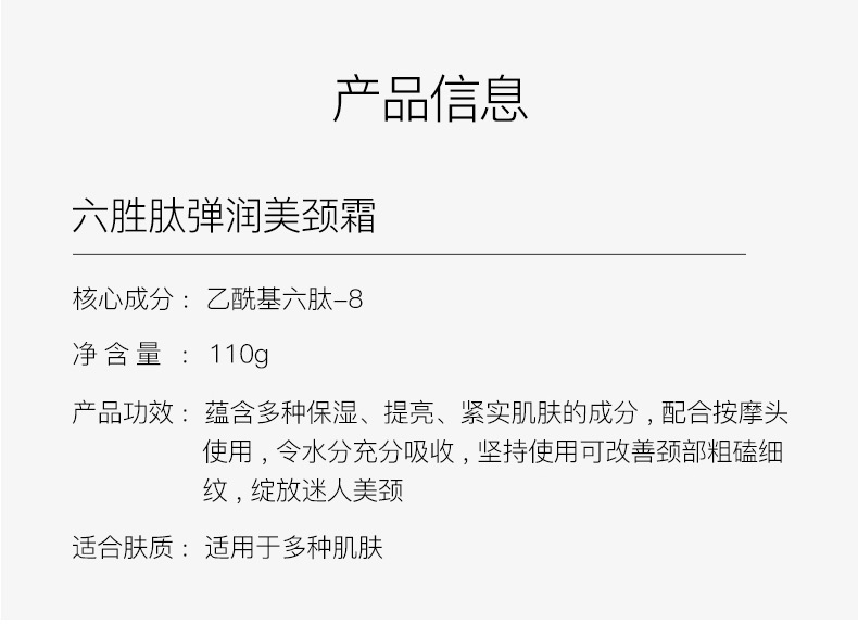 商品名称:色娜娜六胜肽美颈按摩霜 补水保湿清爽 颈部护理 110g