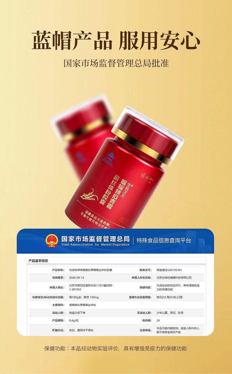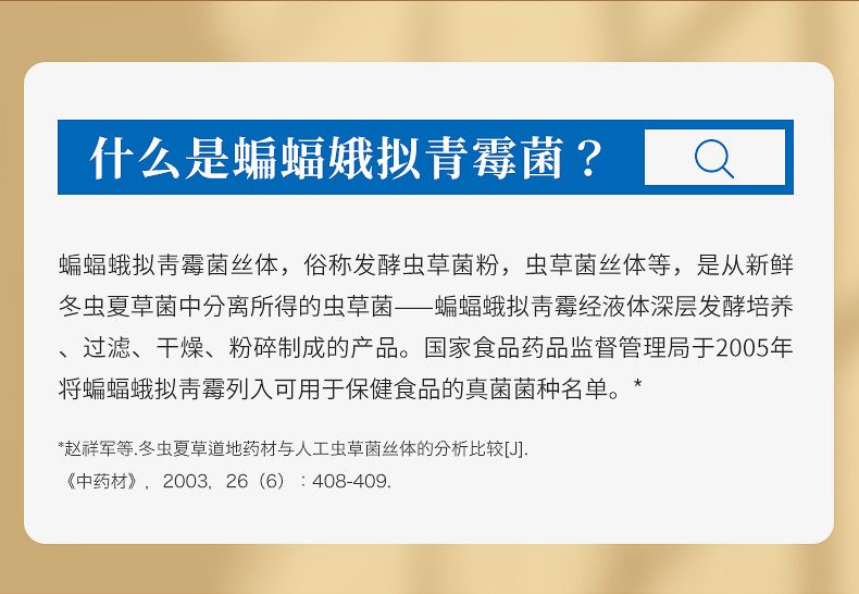 商品名称:张太和 蝙蝠蛾拟青霉菌丝体粉胶囊 96g